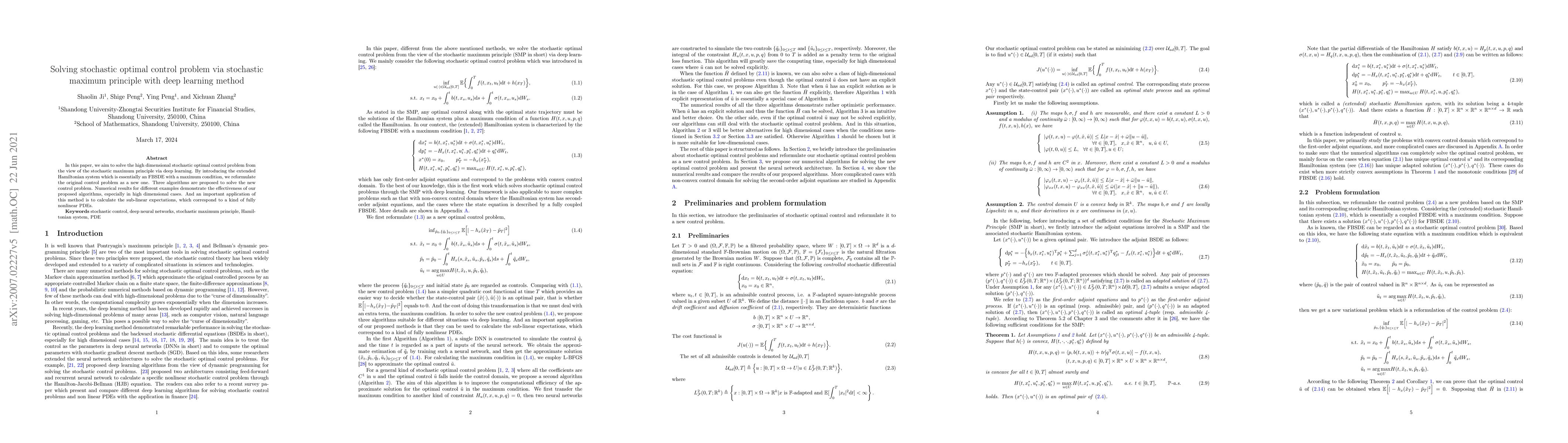 Researchers propose a new method using deep learning to solve high-dimensional stochastic control problems by reformulating them into an extended Hamiltonian system, demonstrating effectiveness in numerical results.