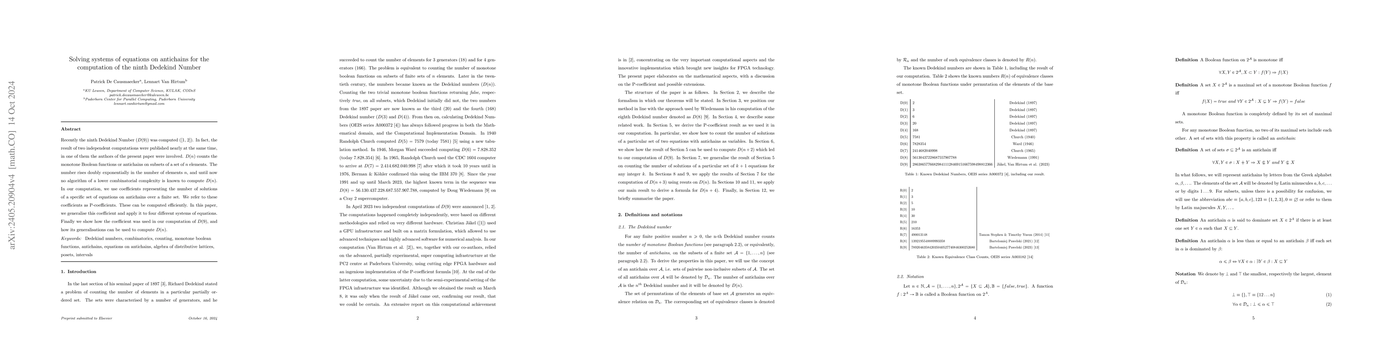 Summary: This paper explores systems of equations on antichains to determine the ninth Dedekind Number (D(9)), illustrating methods that generalize from simple examples and have potential to enhance computational techniques.