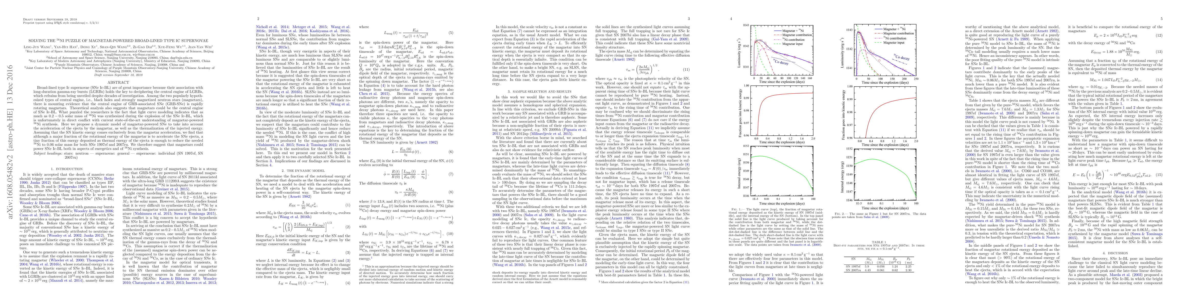 The paper introduces a dynamic model that incorporates magnetar acceleration and thermalization of injected energy, providing a solution to the 56Ni puzzle in magnetar-powered SNe Ic-BL.