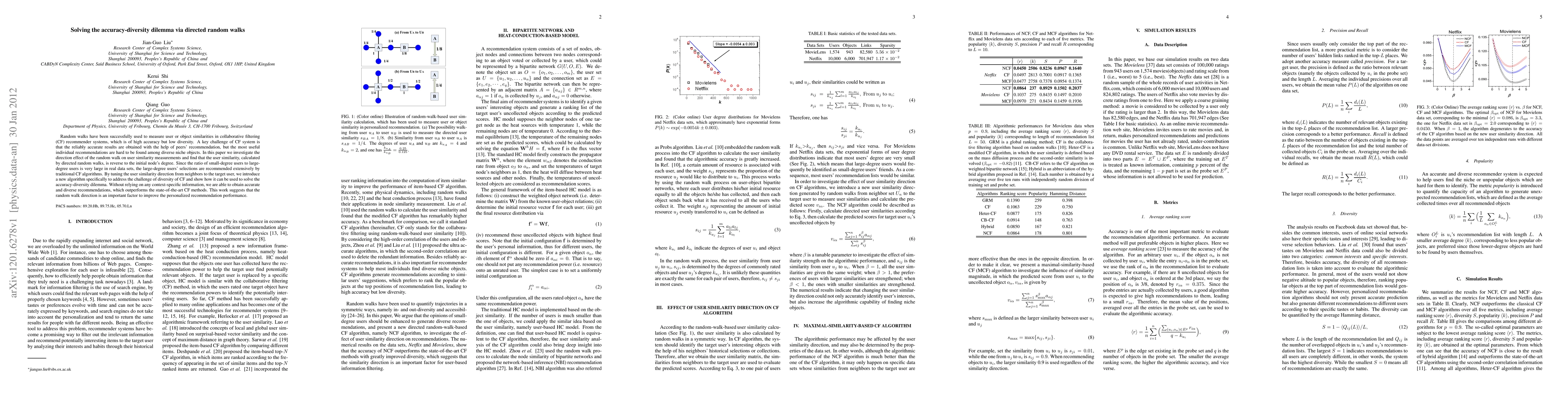 Random walks have been successfully used to measure user or object similarities in collaborative filtering (CF) recommender systems, which is of high accuracy but low diversity. A key challenge of CF system is that the reliably accurate results are obtained with the help of peers' recommendation, but the most useful individual recommendations are hard to be found among diverse niche objects. In this paper we investigate the direction effect of the random walk on user similarity measurements and find that the user similarity, calculated by directed random walks, is reverse to the initial node's degree. Since the ratio of small-degree users to large-degree users is very large in real data sets, the large-degree users' selections are recommended extensively by traditional CF algorithms. By tuning the user similarity direction from neighbors to the target user, we introduce a new algorithm specifically to address the challenge of diversity of CF and show how it can be used to solve the accuracy-diversity dilemma. Without relying on any context-specific information, we are able to obtain accurate and diverse recommendations, which outperforms the state-of-the-art CF methods. This work suggests that the random walk direction is an important factor to improve the personalized recommendation performance.