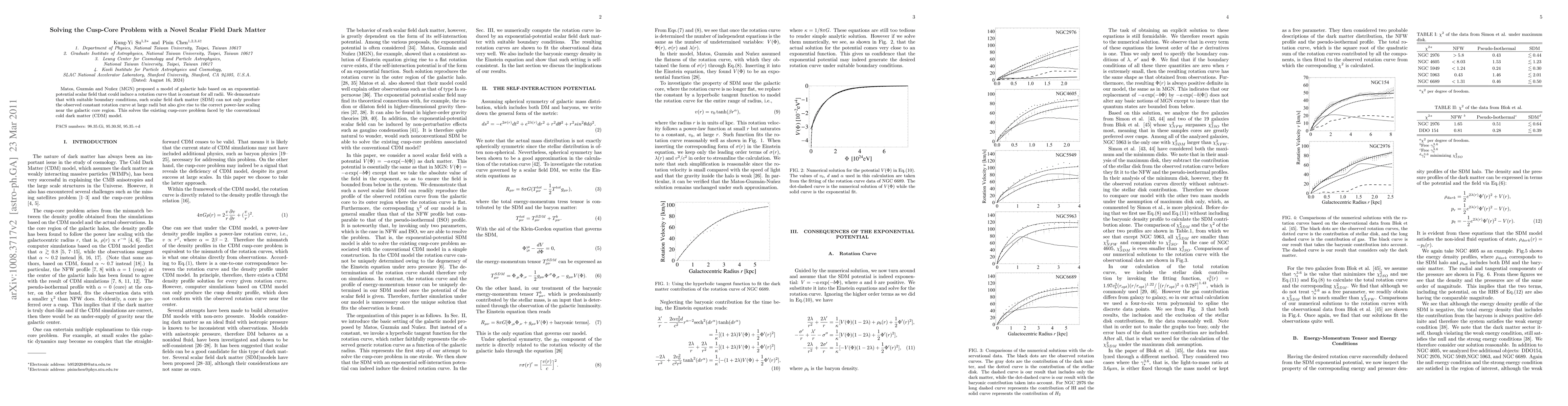 Matos, Guzman, and Nunez introduce a novel scalar field dark matter model with an exponential potential to explain the constant rotation curve in galaxies. This model successfully resolves the cusp-core problem by providing the correct power-law scaling near the galactic core, contrasting with the conventional cold dark matter model.