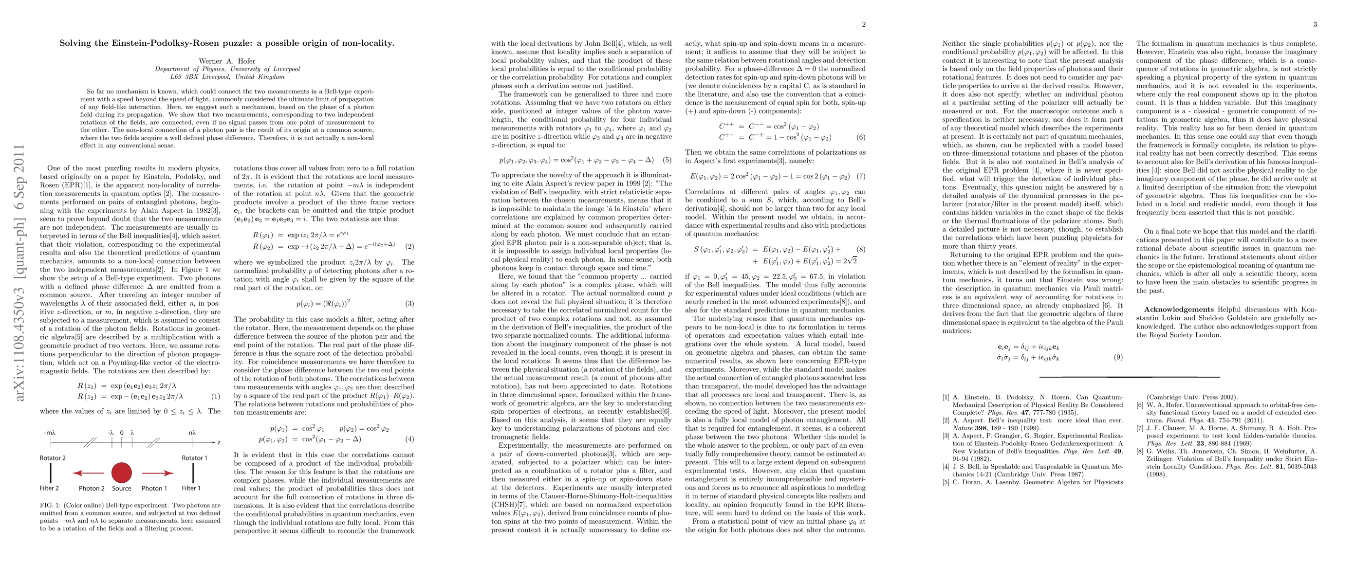 So far no mechanism is known, which could connect the two measurements in a Bell-type experiment with a speed beyond the speed of light, commonly considered the ultimate limit of propagation of any field-like interaction. Here, we suggest such a mechanism, based on the phase of a photon field during its propagation. We show that two measurements, corresponding to two independent rotations of the fields, are connected, even if no signal passes from one point of measurement to the other. The non-local connection of a photon pair is the result of its origin at a common source, where the two fields acquire a well defined phase difference. Therefore, it is not actually a non-local effect in any conventional sense.