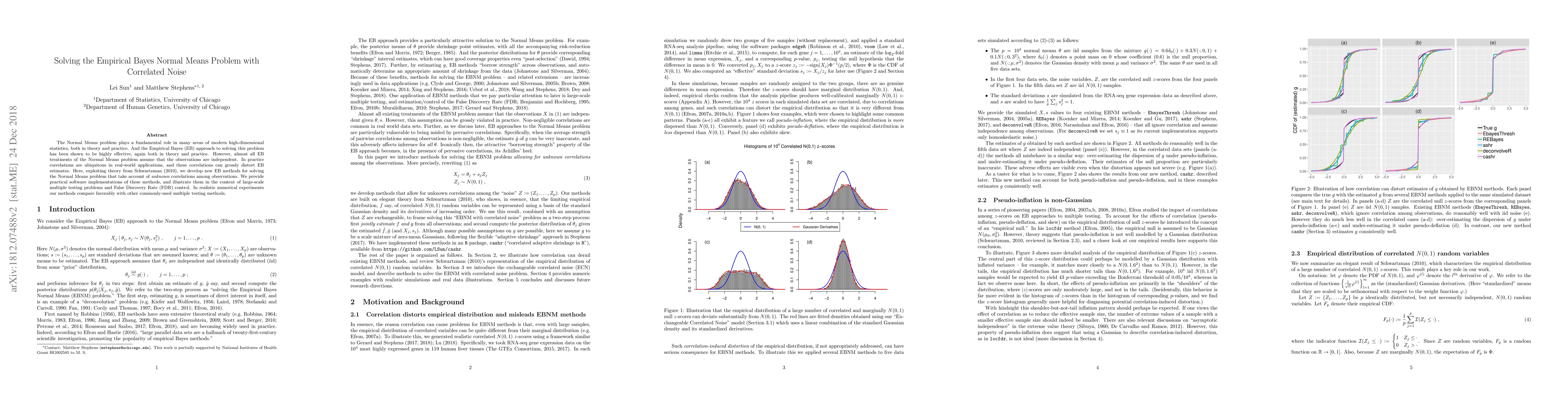 This paper develops new Empirical Bayes methods for solving the Normal Means problem, accounting for unknown correlations among observations, and demonstrates their effectiveness in large-scale multiple testing and FDR control through practical software implementations and realistic numerical experiments.