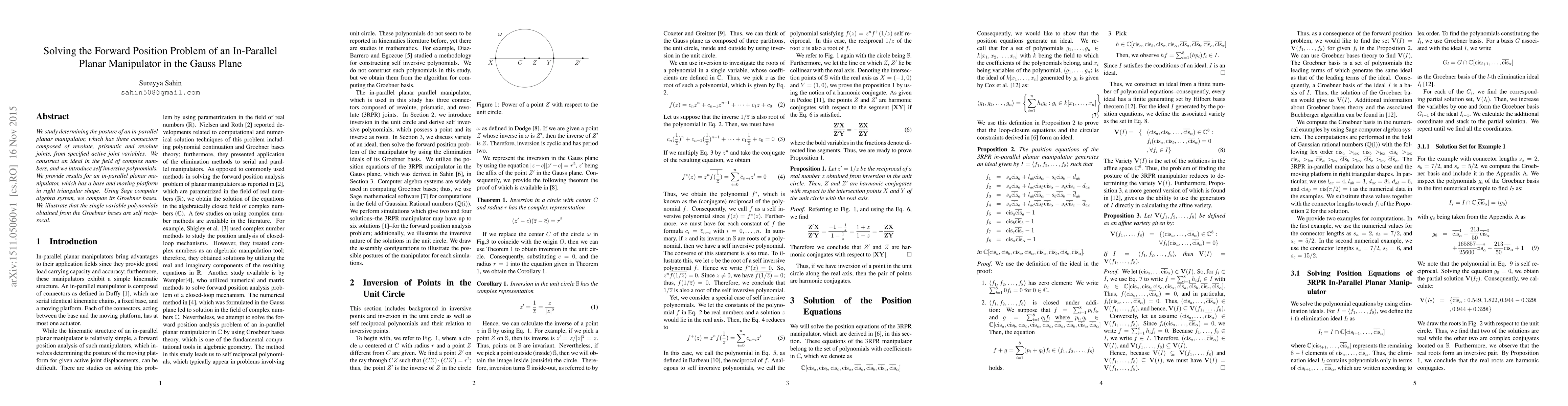 Researchers developed a method to determine the posture of an in-parallel planar manipulator using complex numbers and self-inversive polynomials, allowing for efficient computation of joint variables.