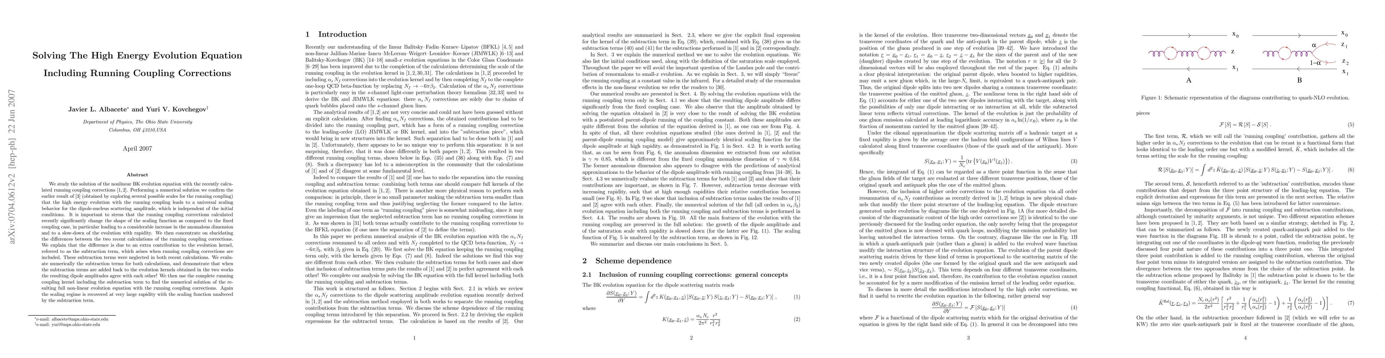 This paper numerically solves the BK evolution equation incorporating recent running coupling corrections, confirming the universal scaling behavior for the dipole scattering amplitude. It also identifies and corrects discrepancies in previous calculations by re-evaluating subtraction terms, showing that the complete running coupling kernel restores agreement between different approaches.