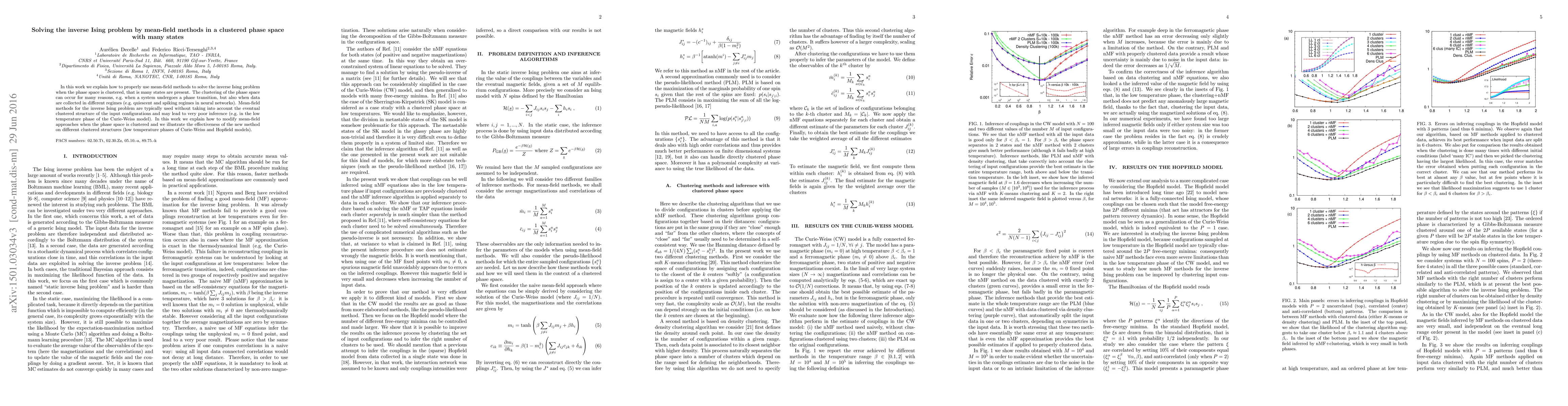 This paper proposes a modified mean-field method to solve the inverse Ising problem in clustered phase spaces, where many states are present, often due to phase transitions. It demonstrates the improved accuracy of this approach compared to traditional methods, particularly in low-temperature phases of the Curie-Weiss and Hopfield models.