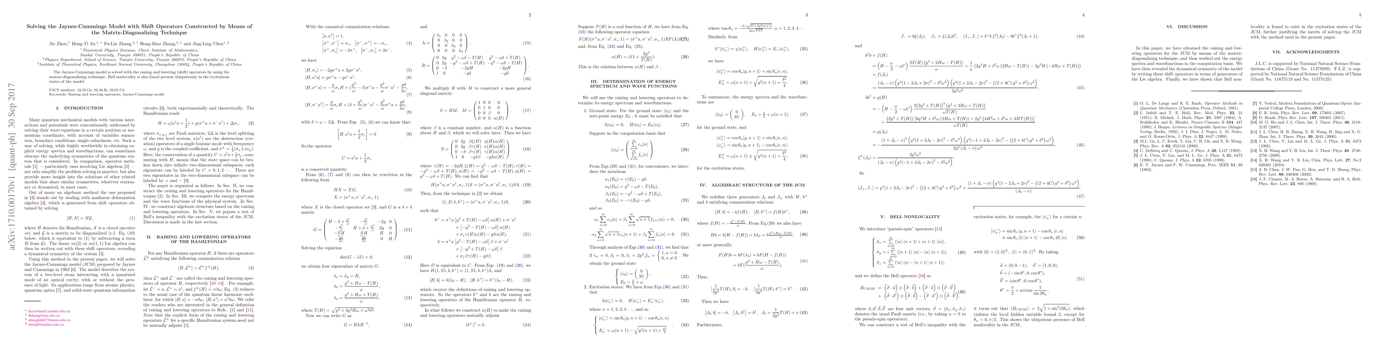The Jaynes-Cummings model is solved with the raising and lowering (shift) operators by using the matrix-diagonalizing technique. Bell nonlocality is also found present ubiquitously in the excitations states of the model.