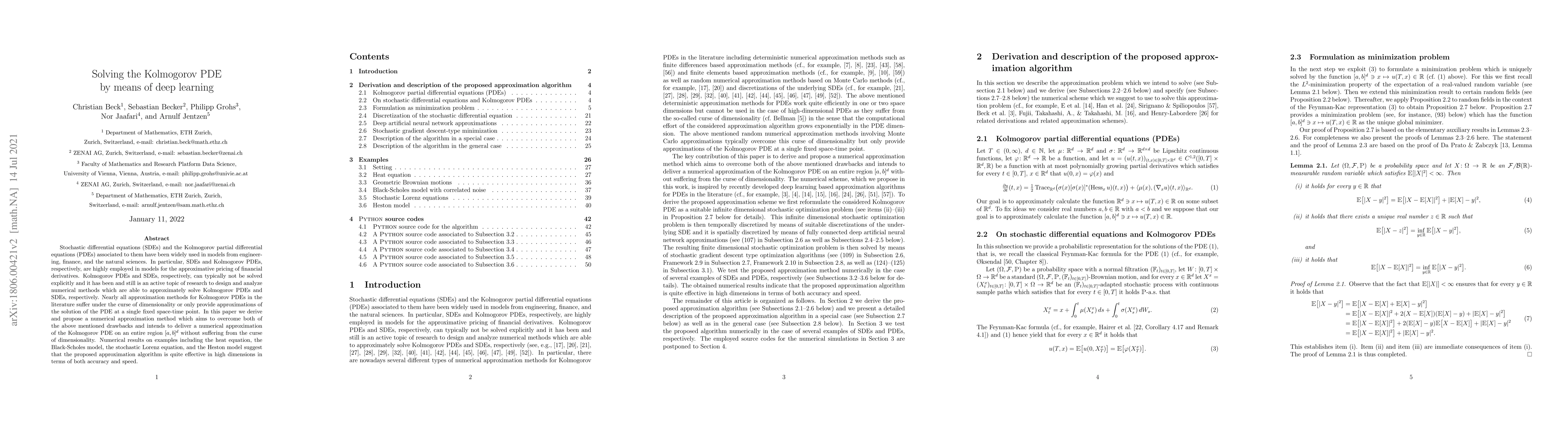 Stochastic differential equations (SDEs) and the Kolmogorov partial differential equations (PDEs) associated to them have been widely used in models from engineering, finance, and the natural sciences. In particular, SDEs and Kolmogorov PDEs, respectively, are highly employed in models for the approximative pricing of financial derivatives. Kolmogorov PDEs and SDEs, respectively, can typically not be solved explicitly and it has been and still is an active topic of research to design and analyze numerical methods which are able to approximately solve Kolmogorov PDEs and SDEs, respectively. Nearly all approximation methods for Kolmogorov PDEs in the literature suffer under the curse of dimensionality or only provide approximations of the solution of the PDE at a single fixed space-time point. In this paper we derive and propose a numerical approximation method which aims to overcome both of the above mentioned drawbacks and intends to deliver a numerical approximation of the Kolmogorov PDE on an entire region $[a,b]^d$ without suffering from the curse of dimensionality. Numerical results on examples including the heat equation, the Black-Scholes model, the stochastic Lorenz equation, and the Heston model suggest that the proposed approximation algorithm is quite effective in high dimensions in terms of both accuracy and speed.