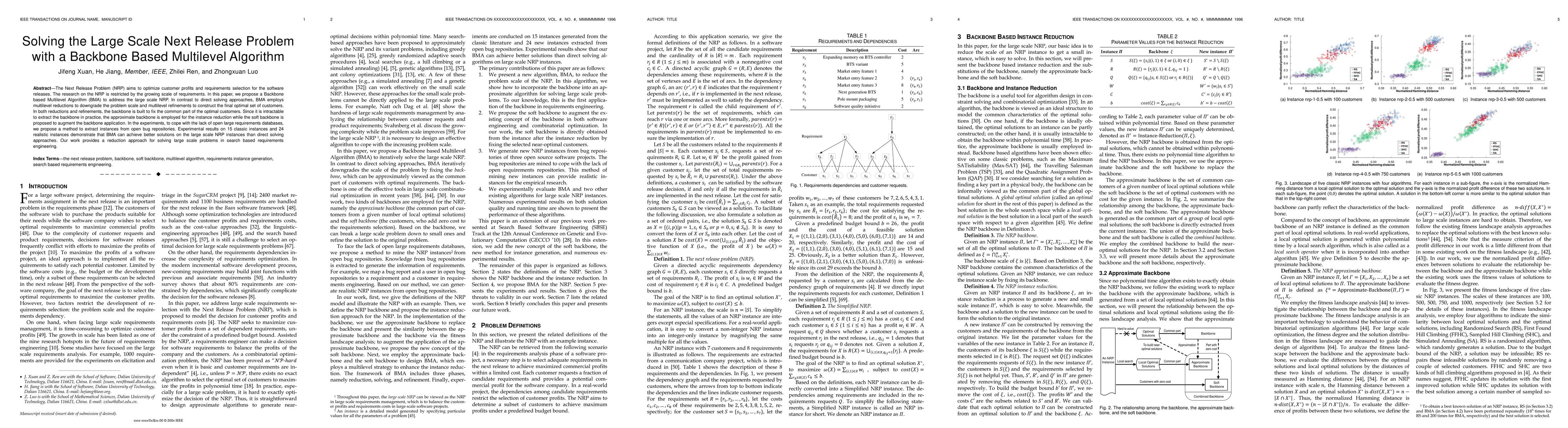 This paper proposes a Backbone based Multilevel Algorithm (BMA) to tackle the large scale Next Release Problem (NRP), optimizing customer profits and requirements selection. BMA uses multilevel reductions and refinements, with an approximate backbone to manage problem scale, achieving better solutions than direct solving methods, as demonstrated on both classic and realistic instances extracted from open bug repositories.