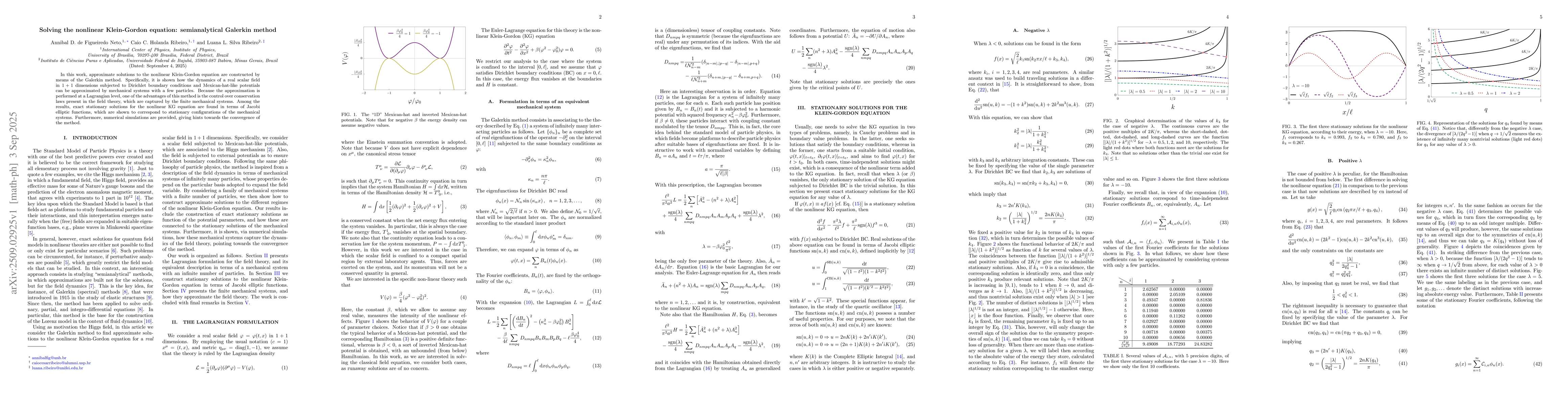 In this work, approximate solutions to the nonlinear Klein-Gordon equation are constructed by means of the Galerkin method. Specifically, it is shown how the dynamics of a real scalar field in $1+1$ dimensions subjected to Dirichlet boundary conditions and Mexican-hat-like potentials can be approximated by mechanical systems with a few particles. Because the approximation is performed at a Lagrangian level, one of the advantages of this method is the control over conservation laws present in the field theory, which are captured by the finite mechanical systems. Among the results, exact stationary solutions for the nonlinear KG equation are found in terms of Jacobi elliptic functions, which are shown to correspond to stationary configurations of the mechanical systems. Furthermore, numerical simulations are provided, giving hints towards the convergence of the method.