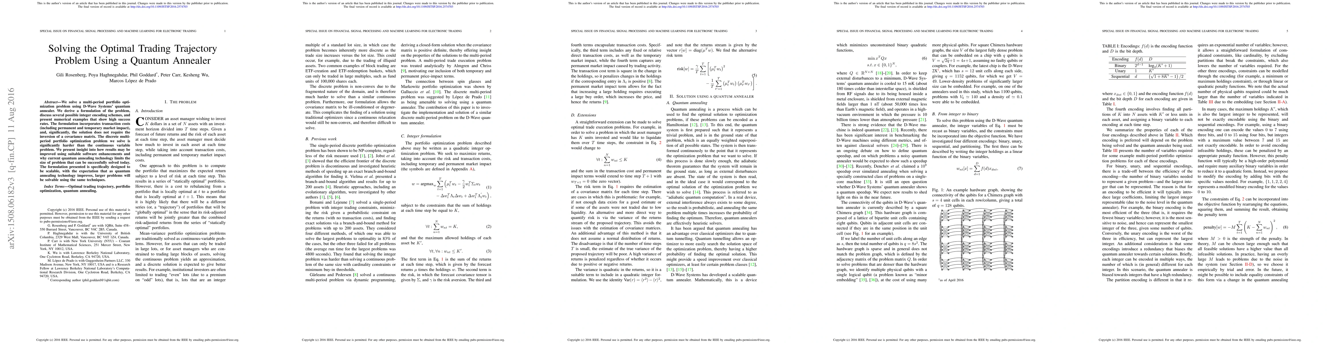 Researchers used a quantum annealer to solve a complex portfolio optimization problem with high success rates, avoiding the need to invert a covariance matrix. The approach shows promise for scalability as quantum technology improves.