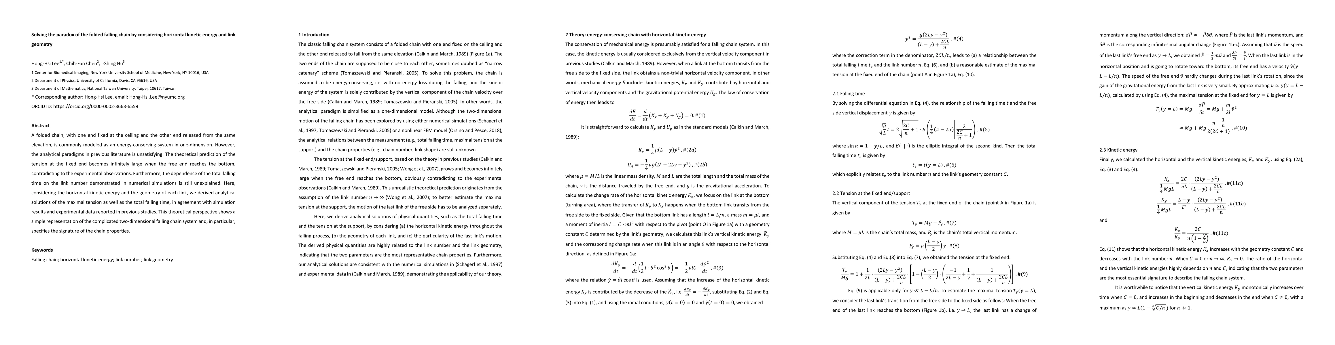 Researchers solved a paradox in the physics of a falling chain by considering horizontal kinetic energy and link geometry, providing analytical solutions that match experimental data and numerical simulations.