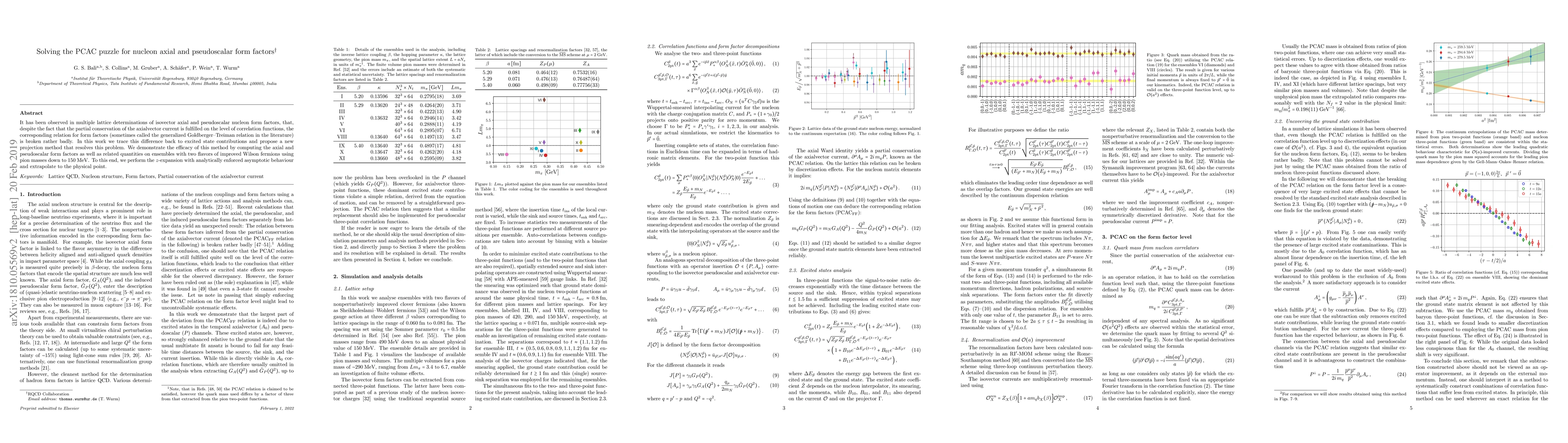 This paper addresses the discrepancy between the partial conservation of the axialvector current in correlation functions and its failure in nucleon form factors, attributing it to excited state contributions. The authors propose a new projection method to resolve this issue and demonstrate its effectiveness through calculations on lattice ensembles with improved Wilson fermions.