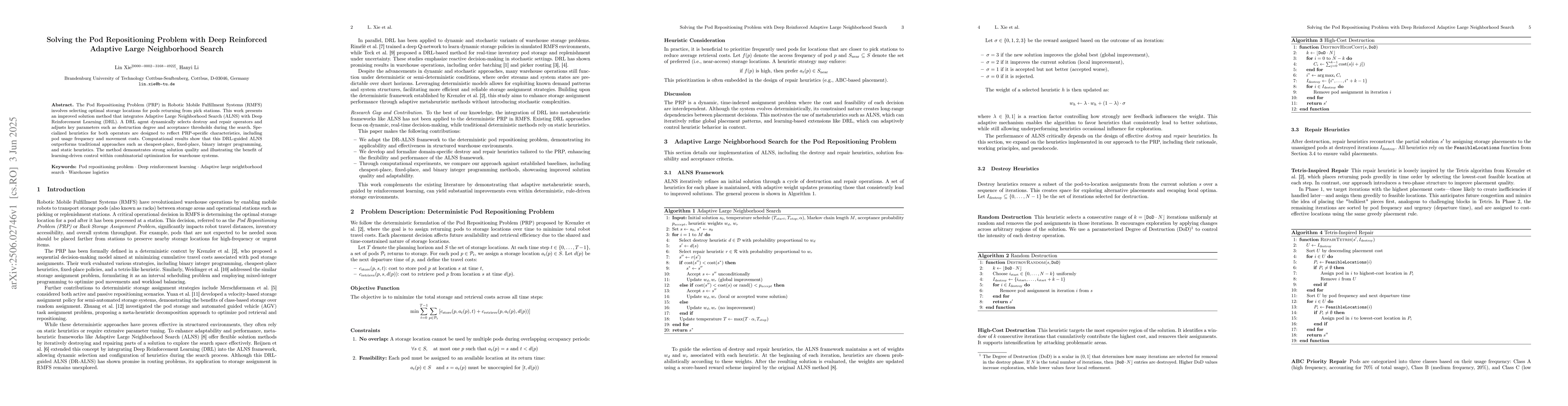 Researchers developed a solution for the Pod Repositioning Problem in Robotic Mobile Fulfillment Systems using Deep Reinforced Adaptive Large Neighborhood Search, outperforming traditional methods with strong solution quality.