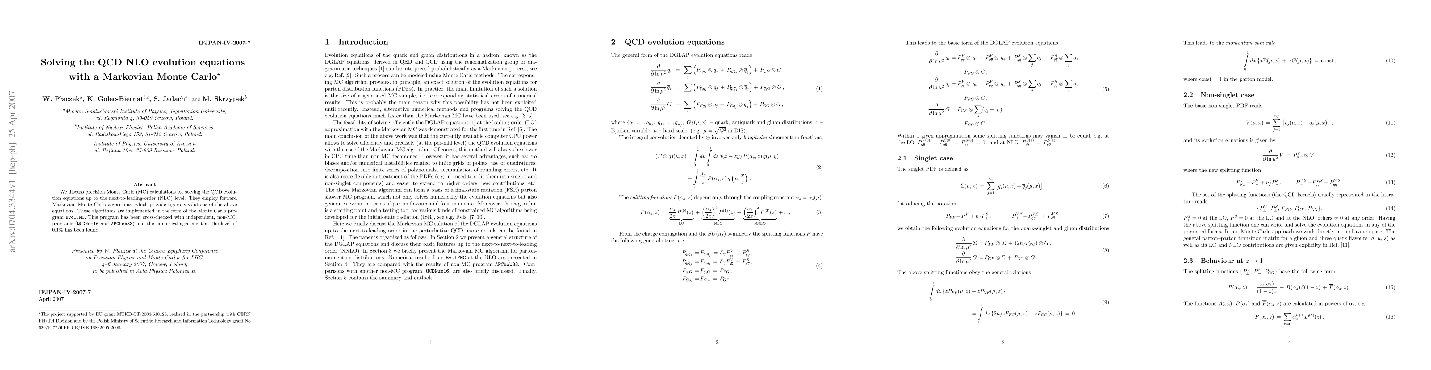 This paper presents precision Monte Carlo calculations for solving QCD evolution equations up to next-to-leading-order using forward Markovian Monte Carlo algorithms implemented in EvolFMC, which shows numerical agreement within 0.1% when cross-checked with independent non-MC programs.