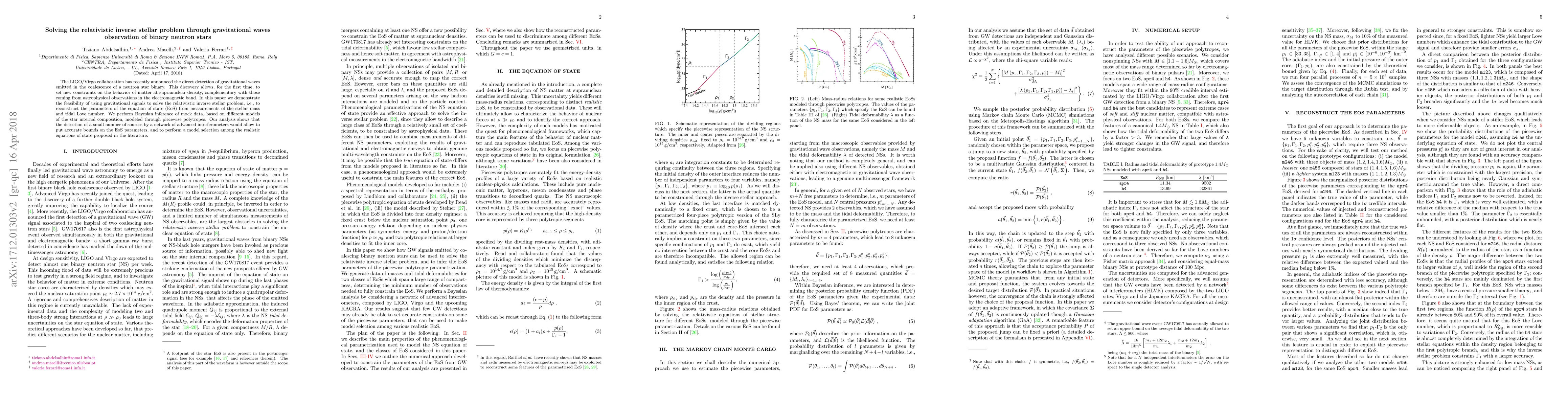 The LIGO/Virgo collaboration has recently announced the direct detection of gravitational waves emitted in the coalescence of a neutron star binary. This discovery allows, for the first time, to set new constraints on the behavior of matter at supranuclear density, complementary with those coming from astrophysical observations in the electromagnetic band. In this paper we demonstrate the feasibility of using gravitational signals to solve the relativistic inverse stellar problem, i.e. to reconstruct the parameters of the equation of state (EoS) from measurements of the stellar mass and tidal Love number. We perform Bayesian inference of mock data, based on different models of the star internal composition, modeled through piecewise polytropes. Our analysis shows that the detection of a small number of sources by a network of advanced interferometers would allow to put accurate bounds on the EoS parameters, and to perform a model selection among the realistic equations of state proposed in the literature.