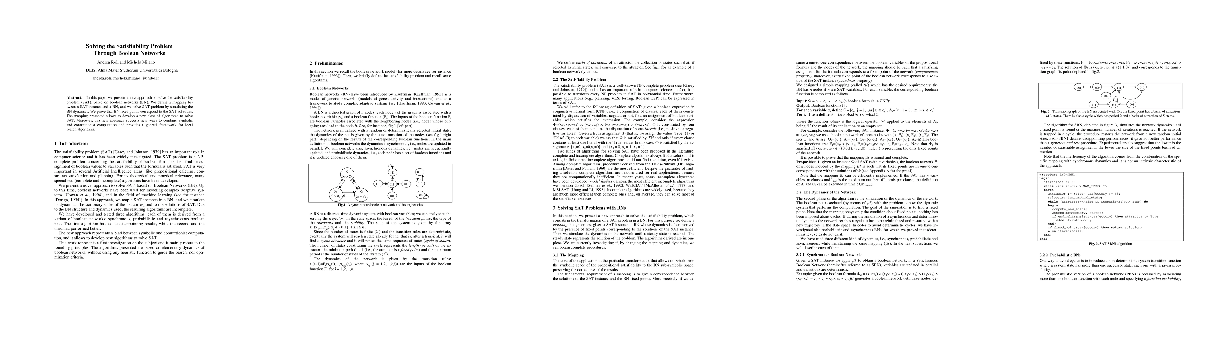 This paper introduces a novel method to solve the satisfiability problem (SAT) using boolean networks (BN), mapping SAT instances to BN and solving SAT by simulating BN dynamics, proving that BN fixed points correspond to SAT solutions. This approach also opens new avenues for combining symbolic and connectionist computation.