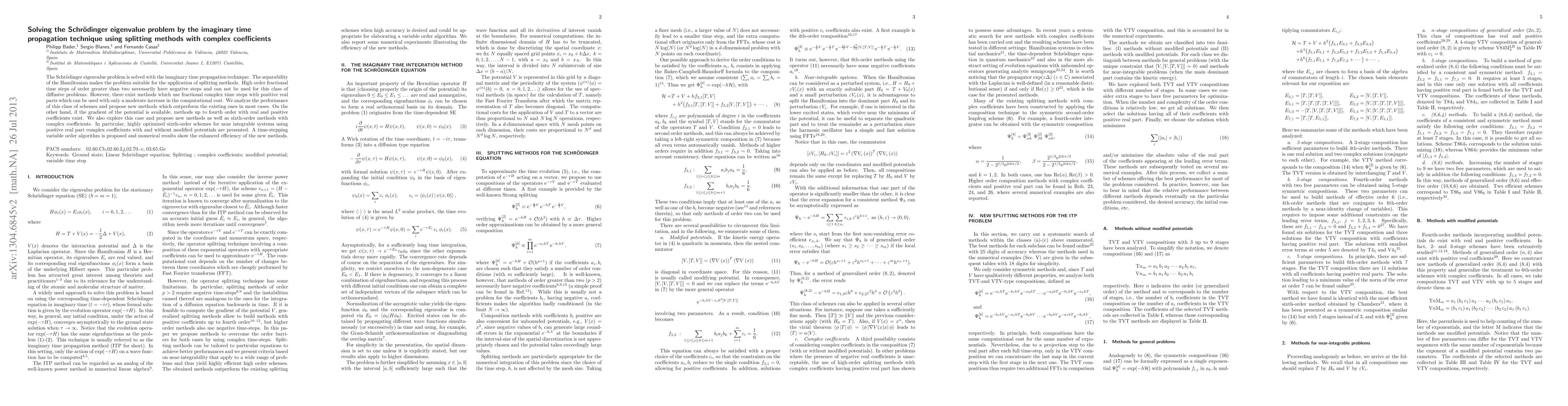 The Schr\"odinger eigenvalue problem is solved with the imaginary time propagation technique. The separability of the Hamiltonian makes the problem suitable for the application of splitting methods. High order fractional time steps of order greater than two necessarily have negative steps and can not be used for this class of diffusive problems. However, there exist methods which use fractional complex time steps with positive real parts which can be used with only a moderate increase in the computational cost. We analyze the performance of this class of schemes and propose new methods which outperform the existing ones in most cases. On the other hand, if the gradient of the potential is available, methods up to fourth order with real and positive coefficients exist. We also explore this case and propose new methods as well as sixth-order methods with complex coefficients. In particular, highly optimized sixth-order schemes for near integrable systems using positive real part complex coefficients with and without modified potentials are presented. A time-stepping variable order algorithm is proposed and numerical results show the enhanced efficiency of the new methods.