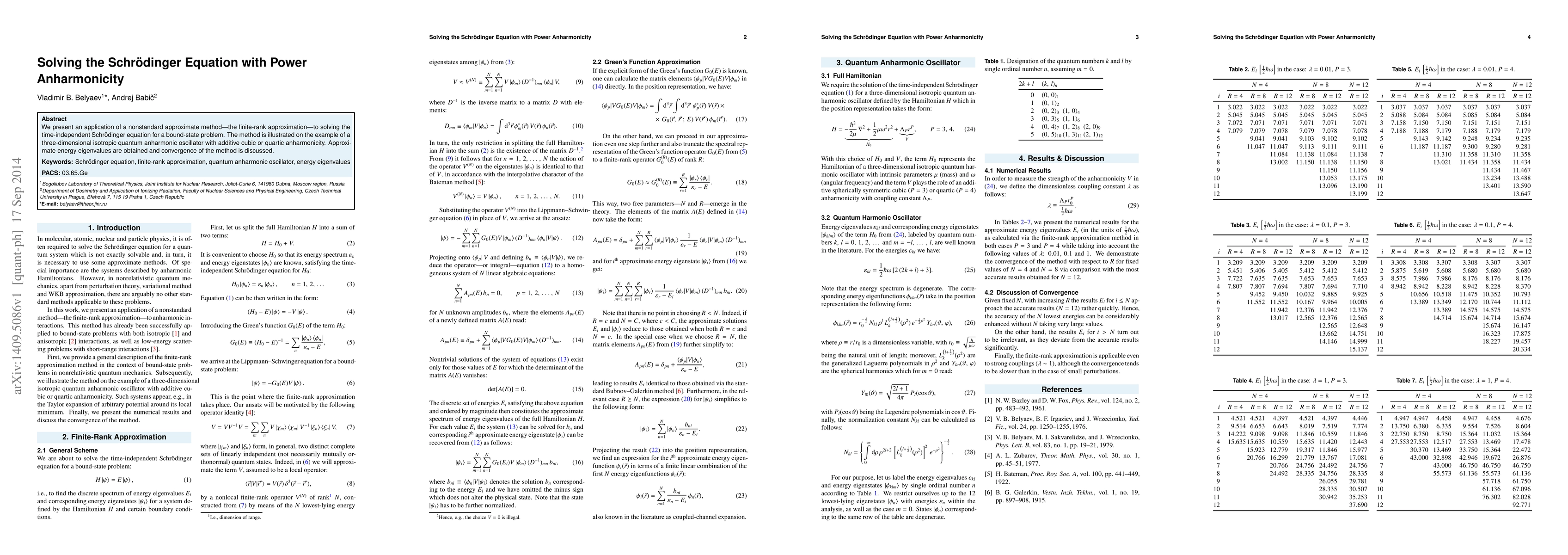 We present an application of a nonstandard approximate method---the finite-rank approximation---to solving the time-independent Schr\"odinger equation for a bound-state problem. The method is illustrated on the example of a three-dimensional isotropic quantum anharmonic oscillator with additive cubic or quartic anharmonicity. Approximate energy eigenvalues are obtained and convergence of the method is discussed.