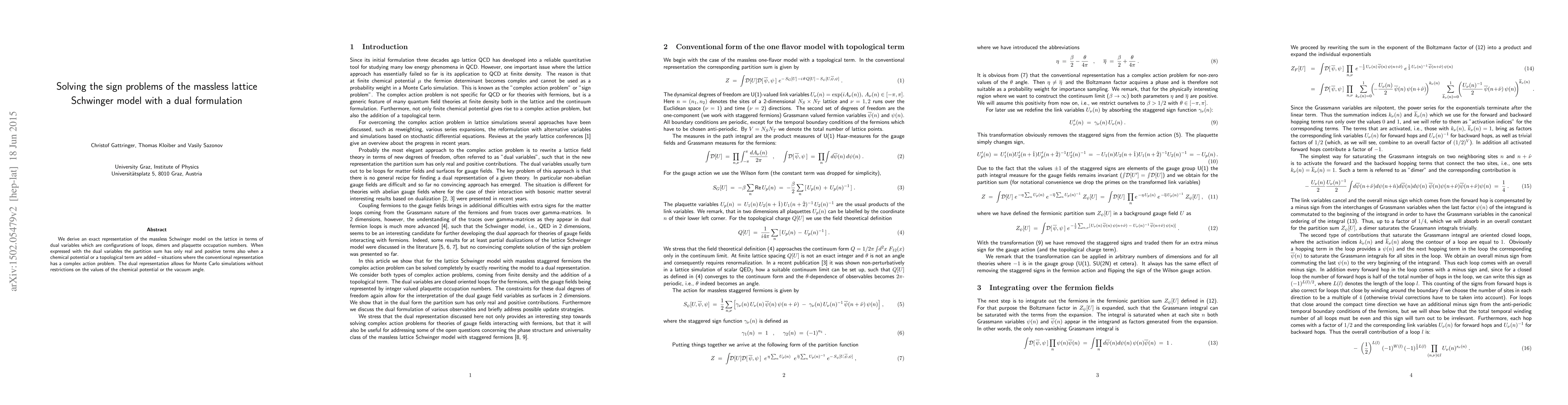 We derive an exact representation of the massless Schwinger model on the lattice in terms of dual variables which are configurations of loops, dimers and plaquette occupation numbers. When expressed with the dual variables the partition sum has only real and positive terms also when a chemical potential or a topological term are added -- situations where the conventional representation has a complex action problem. The dual representation allows for Monte Carlo simulations without restrictions on the values of the chemical potential or the vacuum angle.