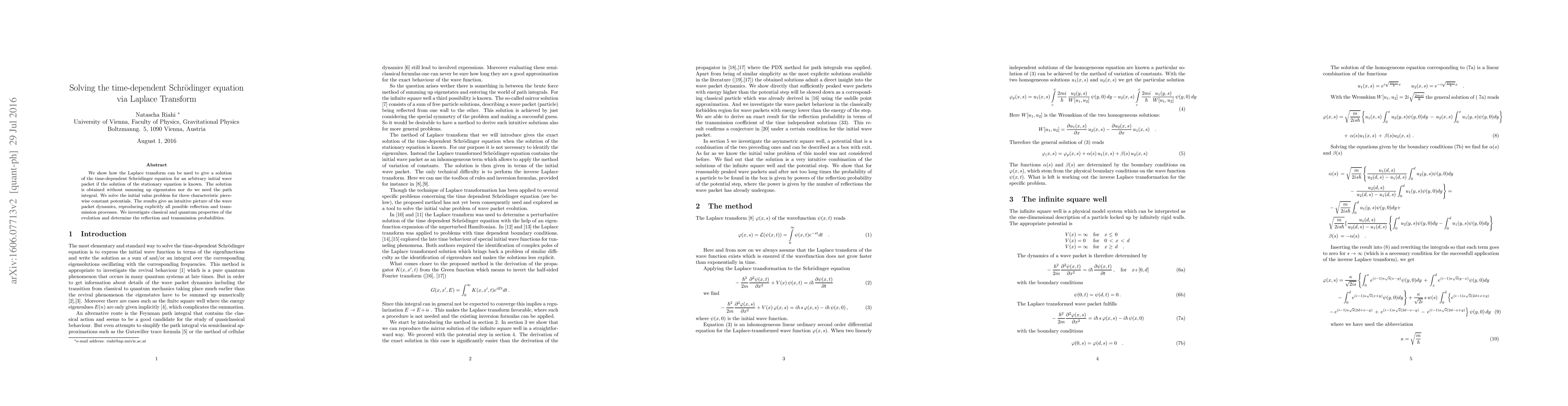 This paper demonstrates a novel method using the Laplace transform to solve the time-dependent Schrödinger equation for an arbitrary initial wave packet, bypassing the need for eigenstate summation or path integrals. It applies this method to three piecewise constant potentials, providing insights into wave packet dynamics and determining reflection and transmission probabilities.