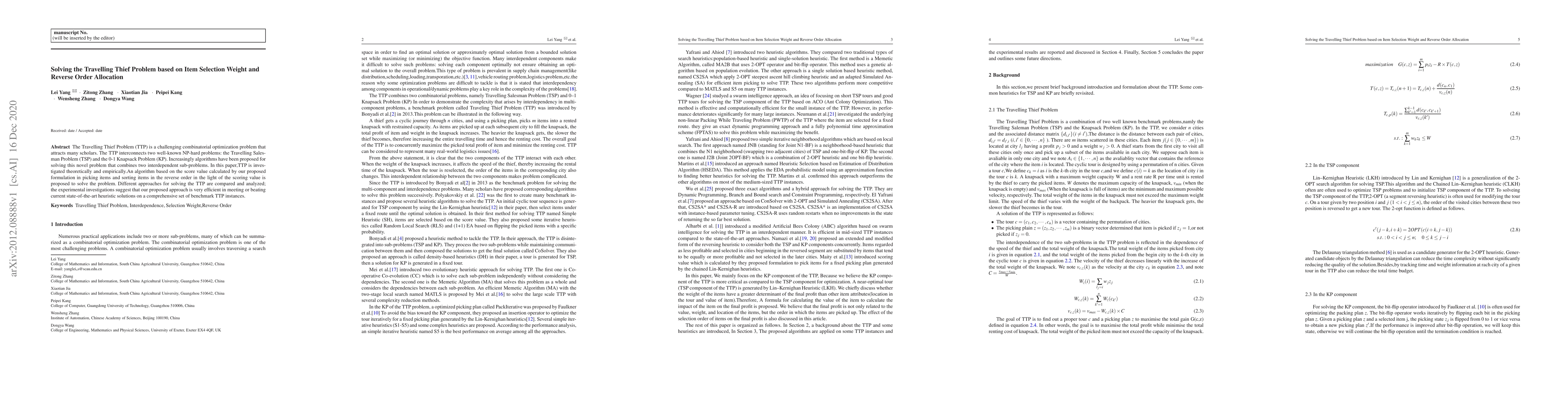 The Travelling Thief Problem (TTP) is a challenging combinatorial optimization problem that attracts many scholars. The TTP interconnects two well-known NP-hard problems: the Travelling Salesman Problem (TSP) and the 0-1 Knapsack Problem (KP). Increasingly algorithms have been proposed for solving this novel problem that combines two interdependent sub-problems. In this paper, TTP is investigated theoretically and empirically. An algorithm based on the score value calculated by our proposed formulation in picking items and sorting items in the reverse order in the light of the scoring value is proposed to solve the problem. Different approaches for solving the TTP are compared and analyzed; the experimental investigations suggest that our proposed approach is very efficient in meeting or beating current state-of-the-art heuristic solutions on a comprehensive set of benchmark TTP instances.