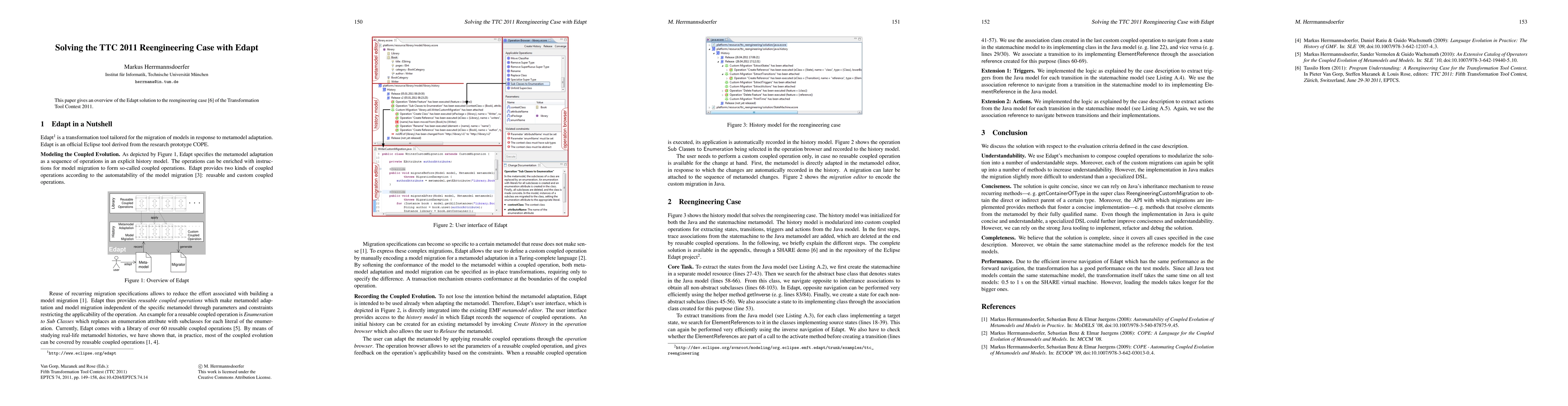 This paper gives an overview of the Edapt solution to the reengineering case of the Transformation Tool Contest 2011.