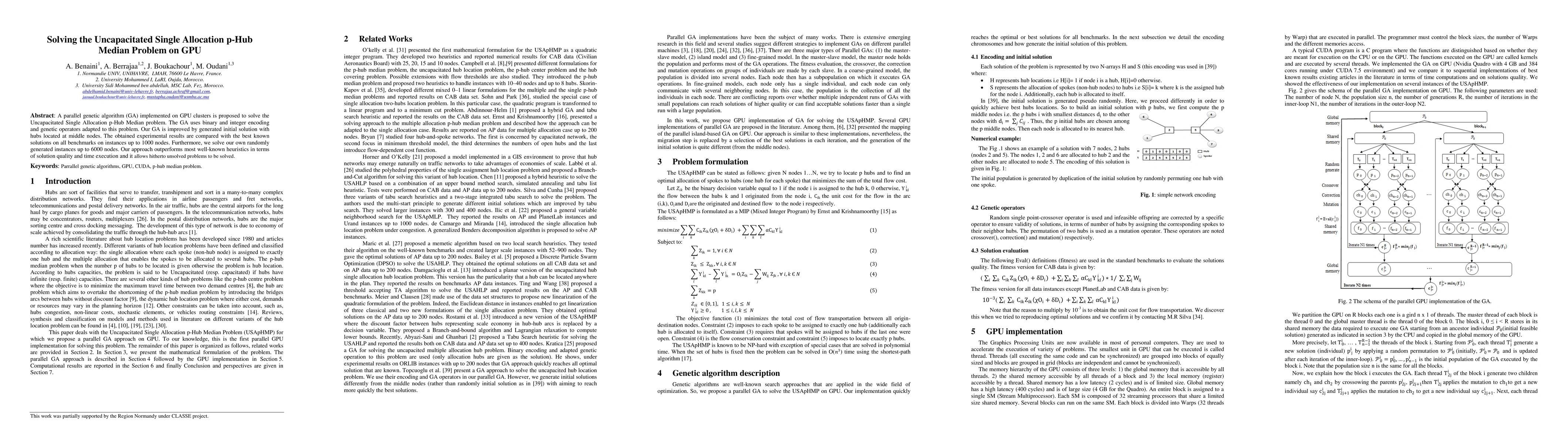 A parallel genetic algorithm (GA) implemented on GPU clusters is proposed to solve the Uncapacitated Single Allocation p-Hub Median problem. The GA uses binary and integer encoding and genetic operators adapted to this problem. Our GA is improved by generated initial solution with hubs located at middle nodes. The obtained experimental results are compared with the best known solutions on all benchmarks on instances up to 1000 nodes. Furthermore, we solve our own randomly generated instances up to 6000 nodes. Our approach outperforms most well-known heuristics in terms of solution quality and time execution and it allows hitherto unsolved problems to be solved.