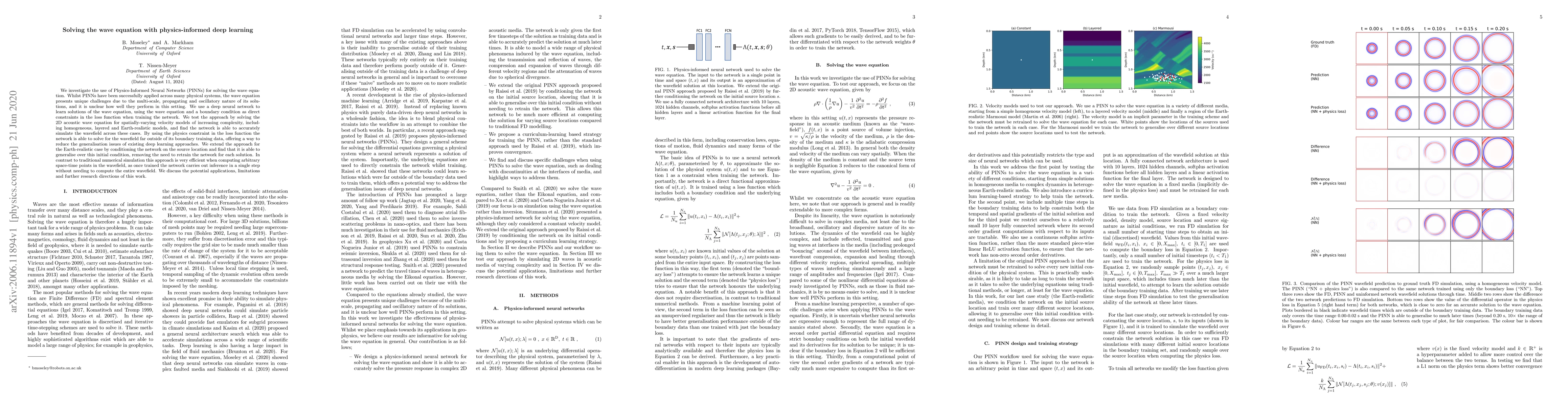 This paper explores the application of Physics-Informed Neural Networks (PINNs) to solve the wave equation, demonstrating their effectiveness across various complex scenarios. The approach efficiently simulates wavefields by incorporating physical constraints directly into the network's loss function, significantly reducing generalization issues and computational costs compared to traditional methods.