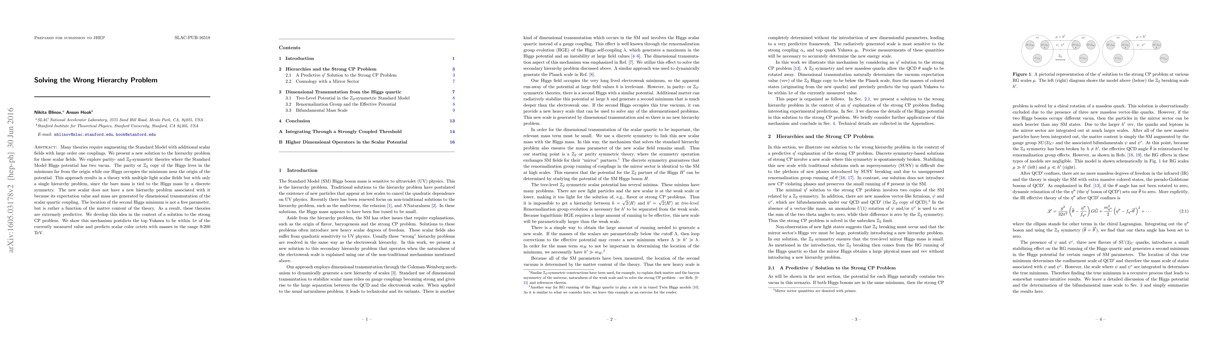 Many theories require augmenting the Standard Model with additional scalar fields with large order one couplings. We present a new solution to the hierarchy problem for these scalar fields. We explore parity- and $\mathbb{Z}_2$-symmetric theories where the Standard Model Higgs potential has two vacua. The parity or $\mathbb{Z}_2$ copy of the Higgs lives in the minimum far from the origin while our Higgs occupies the minimum near the origin of the potential. This approach results in a theory with multiple light scalar fields but with only a single hierarchy problem, since the bare mass is tied to the Higgs mass by a discrete symmetry. The new scalar does not have a new hierarchy problem associated with it because its expectation value and mass are generated by dimensional transmutation of the scalar quartic coupling. The location of the second Higgs minimum is not a free parameter, but is rather a function of the matter content of the theory. As a result, these theories are extremely predictive. We develop this idea in the context of a solution to the strong CP problem. We show this mechanism postdicts the top Yukawa to be within $1 \sigma$ of the currently measured value and predicts scalar color octets with masses in the range 9-200 TeV.