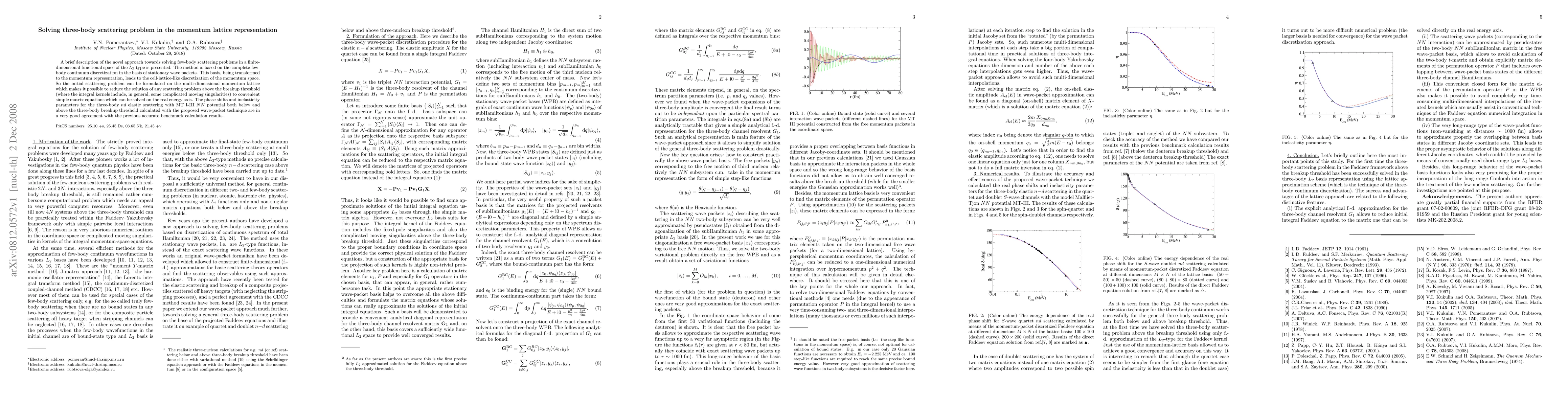 This paper introduces a novel method for solving three-body scattering problems by discretizing the few-body continuum in the momentum lattice representation. The approach transforms stationary wave packets into the momentum space, enabling the formulation of scattering problems on a multi-dimensional lattice, which simplifies the solution to matrix equations.