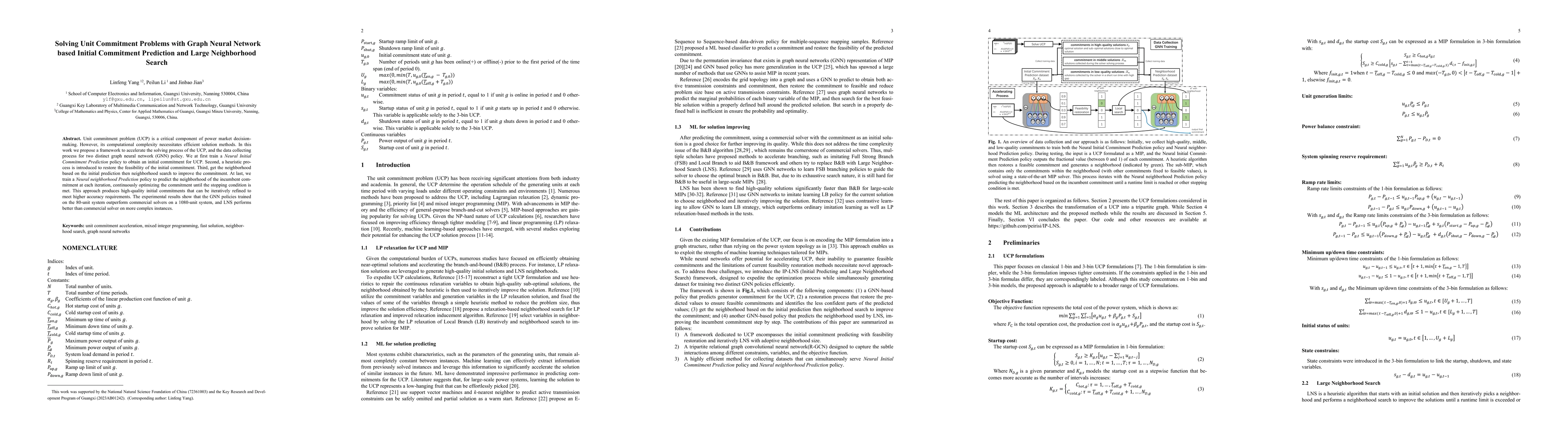 This work stands out by combining Graph Neural Networks with Large Neighborhood Search for solving the Unit Commitment Problem, outperforming commercial solvers on larger and more complex instances.