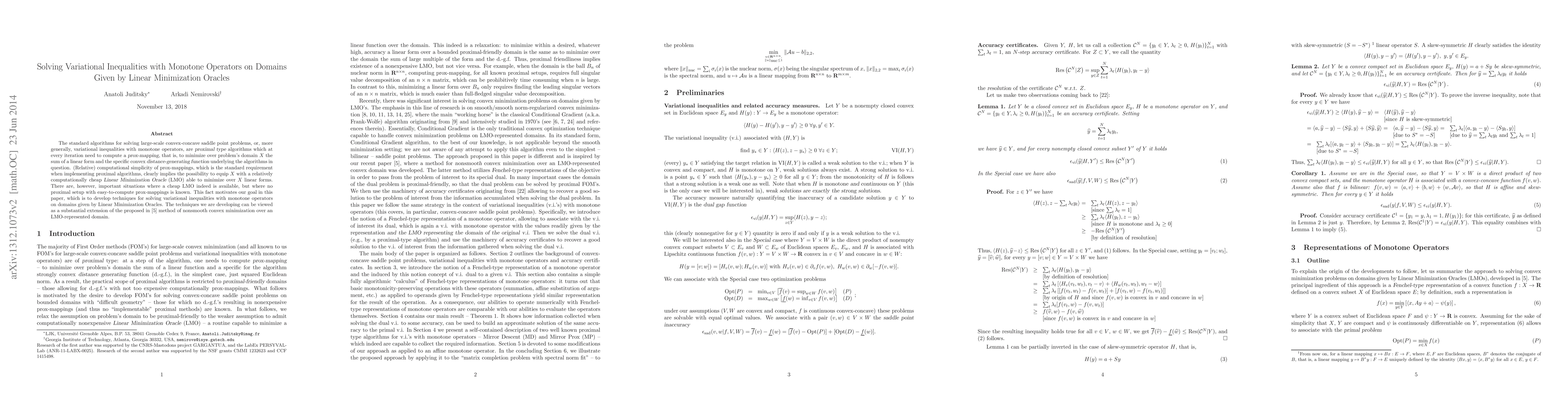 This paper develops techniques for solving variational inequalities with monotone operators on domains represented by Linear Minimization Oracles (LMOs), extending previous methods for nonsmooth convex minimization over LMO-represented domains. The focus is on leveraging computationally cheap LMOs to simplify proximal algorithms.