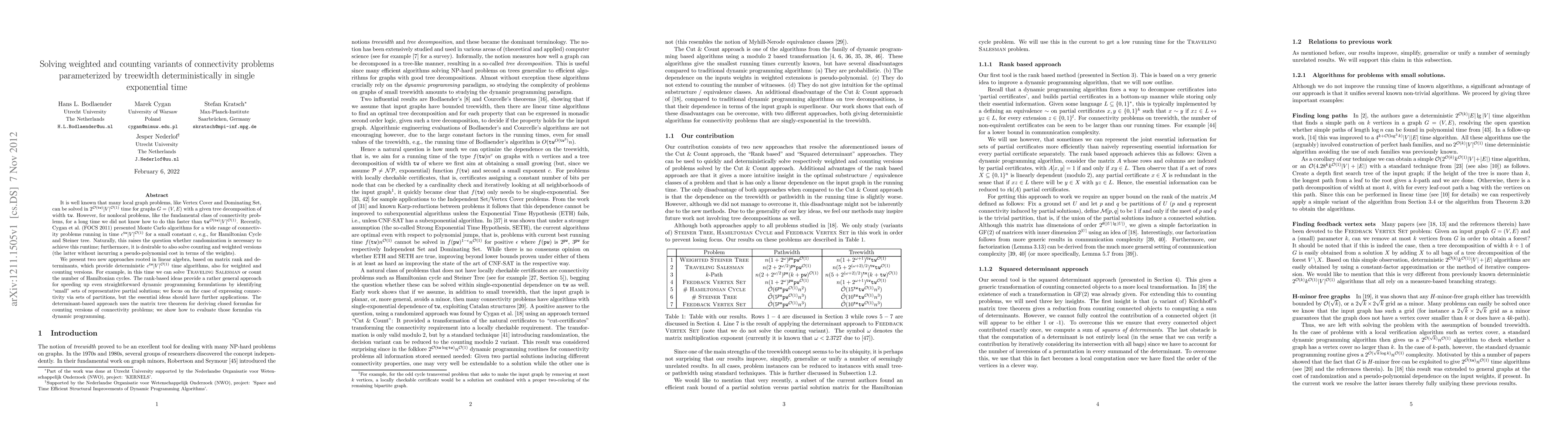 Researchers have developed two new algorithms to solve connectivity problems in graphs with a given tree decomposition of width tw, achieving deterministic single exponential time, and also solving weighted and counting variants.
