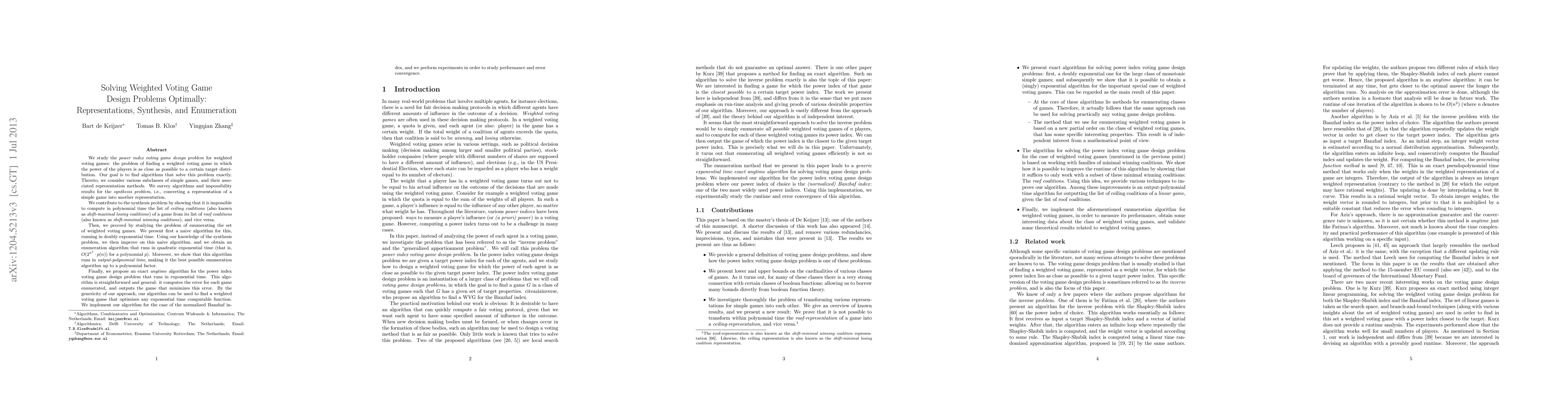 We study the inverse power index problem for weighted voting games: the problem of finding a weighted voting game in which the power of the players is as close as possible to a certain target distribution. Our goal is to find algorithms that solve this problem exactly. Thereto, we study various subclasses of simple games, and their associated representation methods. We survey algorithms and impossibility results for the synthesis problem, i.e., converting a representation of a simple game into another representation. We contribute to the synthesis problem by showing that it is impossible to compute in polynomial time the list of ceiling coalitions (also known as shift-maximal losing coalitions) of a game from its list of roof coalitions (also known as shift-minimal winning coalitions), and vice versa. Then, we proceed by studying the problem of enumerating the set of weighted voting games. We present first a naive algorithm for this, running in doubly exponential time. Using our knowledge of the synthesis problem, we then improve on this naive algorithm, and we obtain an enumeration algorithm that runs in quadratic exponential time (that is, O(2^(n^2) p(n)) for a polynomial p). Moreover, we show that this algorithm runs in output-polynomial time, making it the best possible enumeration algorithm up to a polynomial factor. Finally, we propose an exact anytime algorithm for the inverse power index problem that runs in exponential time. This algorithm is straightforward and general: it computes the error for each game enumerated, and outputs the game that minimizes this error. By the genericity of our approach, our algorithm can be used to find a weighted voting game that optimizes any exponential time computable function. We implement our algorithm for the case of the normalized Banzhaf index, and we perform experiments in order to study performance and error convergence.