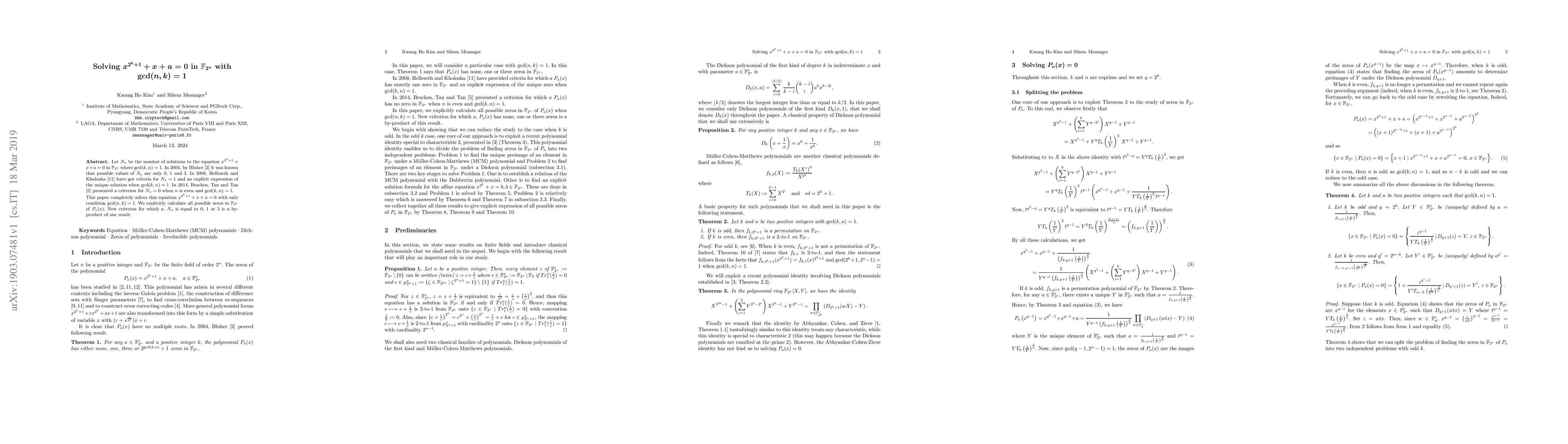 Sihem Mesnager, Kwang Ho Kim, Chung Hyok Kim