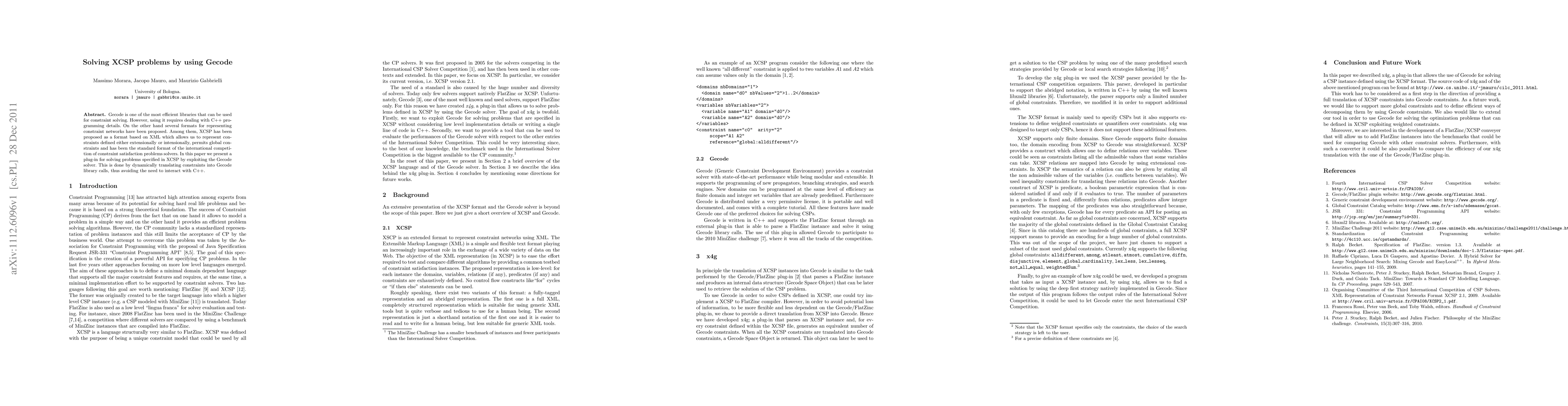 This paper introduces a plug-in that translates XCSP (XML Constraint Satisfaction Problem) constraints into Gecode library calls, enabling the use of Gecode's efficient constraint solving capabilities without requiring C++ programming knowledge. The plug-in dynamically converts XCSP representations into Gecode's internal format, facilitating easier problem specification.