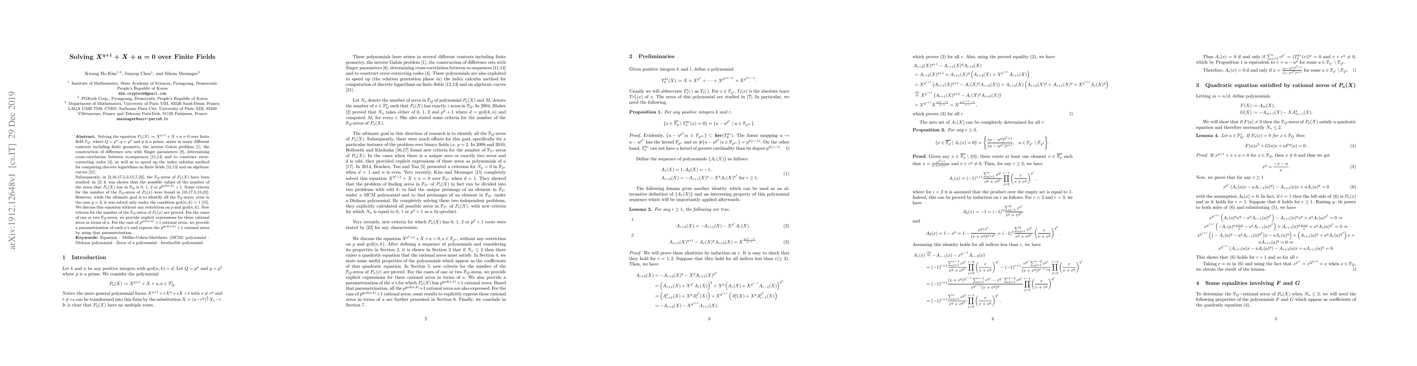 The paper introduces novel criteria for determining the number of zeros of $P_a(X)$ over finite fields, along with explicit expressions for rational zeros in specific cases.