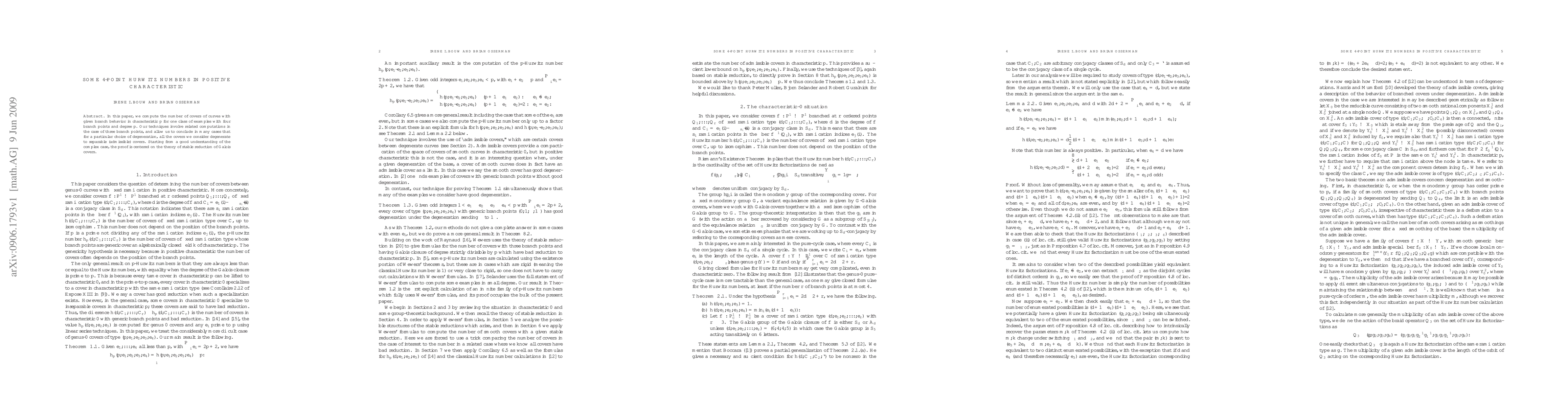 In this paper, we compute the number of covers of curves with given branch behavior in characteristic p for one class of examples with four branch points and degree p. Our techniques involve related computations in the case of three branch points, and allow us to conclude in many cases that for a particular choice of degeneration, all the covers we consider degenerate to separable (admissible) covers. Starting from a good understanding of the complex case, the proof is centered on the theory of stable reduction of Galois covers.