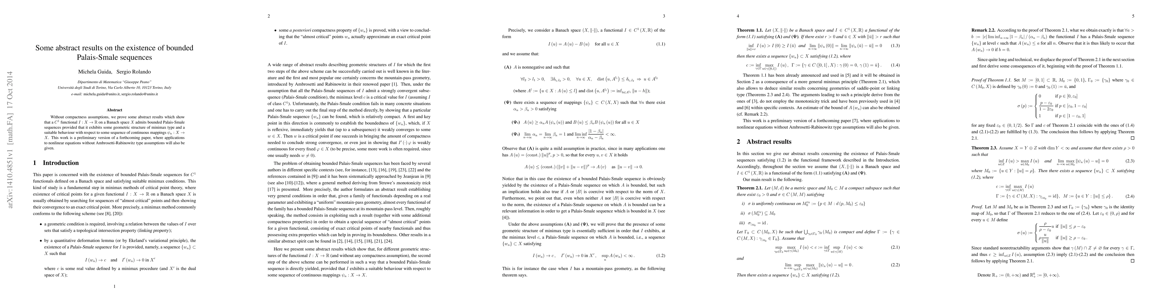 This paper proves abstract results showing that a $C^{1}$ functional on a Banach space can have bounded Palais-Smale sequences under certain geometric minimax conditions and specific behaviors of a sequence of continuous mappings, without requiring compactness assumptions. Future work will apply these results to nonlinear equations without Ambrosetti-Rabinowitz assumptions.