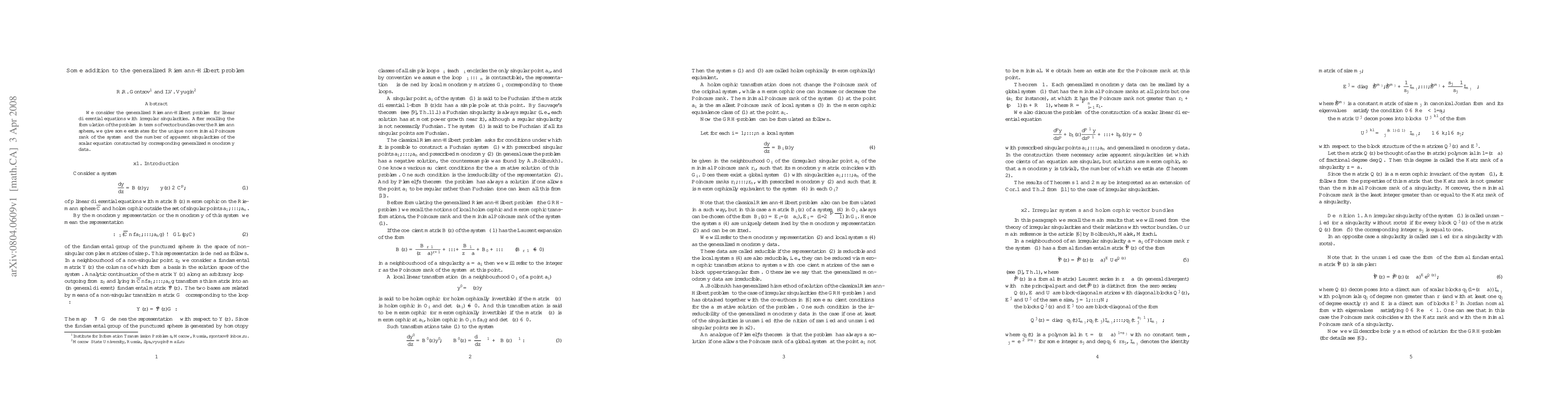 We give some additions to the article "On the generalized Riemann-Hilbert problem with irregular singularities" by Bolibruch, Malek, Mitschi (math/0410483). In particular, a weak GRH-problem and the GRH-problem for scalar differential equations are discussed.