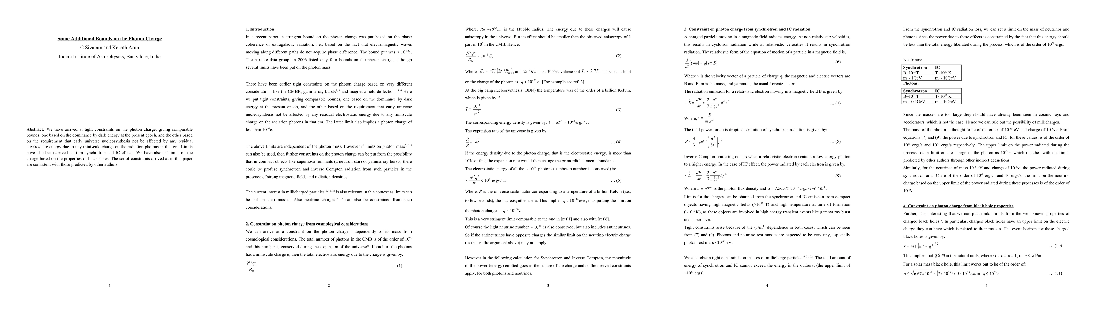 Researchers have set tight constraints on the photon charge using dark energy, early universe nucleosynthesis, synchrotron effects, and black hole properties, finding bounds that align with previous predictions.