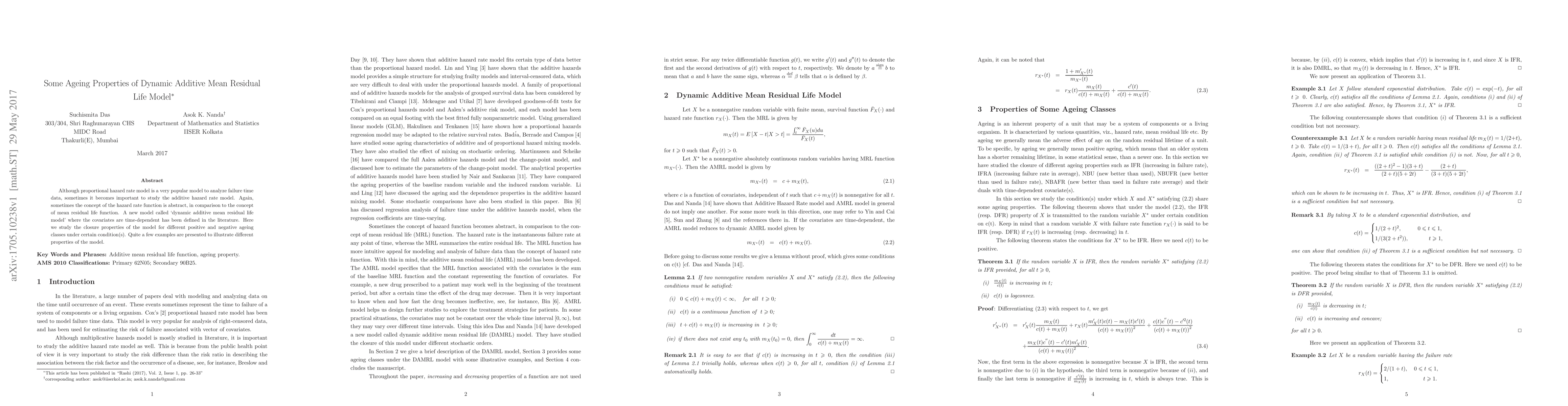 This paper explores the closure properties of a dynamic additive mean residual life model, focusing on its behavior under various positive and negative ageing classes. Examples are provided to illustrate the model's characteristics and demonstrate its applicability in analyzing failure time data.