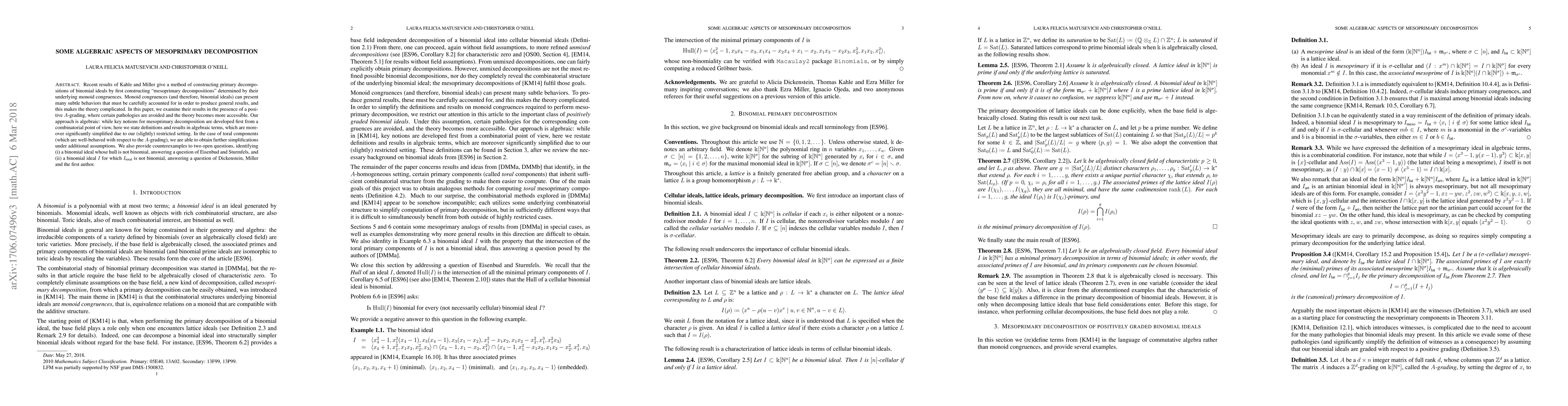 Recent results of Kahle and Miller give a method of constructing primary decompositions of binomial ideals by first constructing "mesoprimary decompositions" determined by their underlying monoid congruences. Monoid congruences (and therefore, binomial ideals) can present many subtle behaviors that must be carefully accounted for in order to produce general results, and this makes the theory complicated. In this paper, we examine their results in the presence of a positive $A$-grading, where certain pathologies are avoided and the theory becomes more accessible. Our approach is algebraic: while key notions for mesoprimary decomposition are developed first from a combinatorial point of view, here we state definitions and results in algebraic terms, which are moreover significantly simplified due to our (slightly) restricted setting. In the case of toral components (which are well-behaved with respect to the $A$-grading), we are able to obtain further simplifications under additional assumptions. We also provide counterexamples to two open questions, identifying (i) a binomial ideal whose hull is not binomial, answering a question of Eisenbud and Sturmfels, and (ii) a binomial ideal $I$ for which $I_\text{toral}$ is not binomial, answering a question of Dickenstein, Miller and the first author.