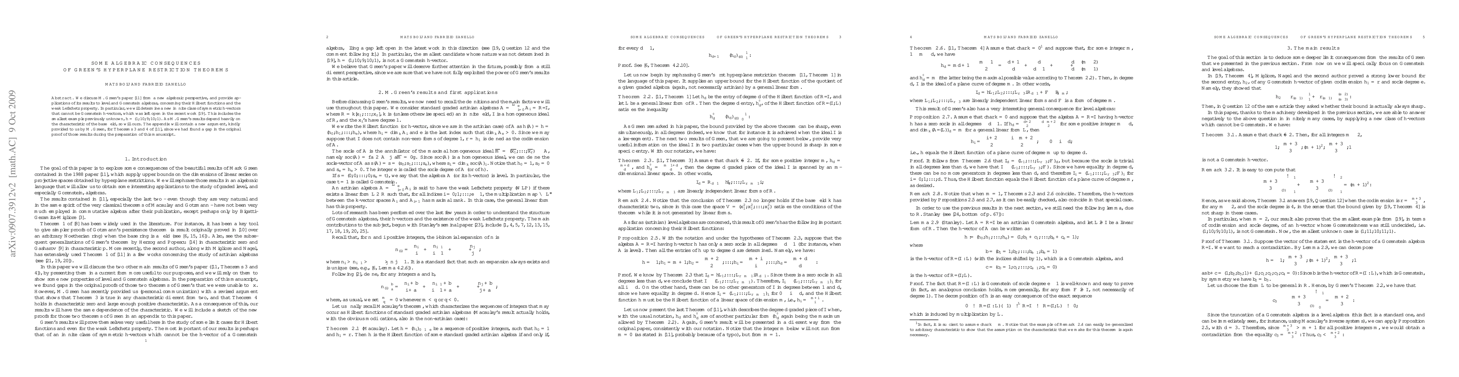 We discuss a paper of M. Green from a new algebraic perspective, and provide applications of its results to level and Gorenstein algebras, concerning their Hilbert functions and the weak Lefschetz property. In particular, we will determine a new infinite class of symmetric $h$-vectors that cannot be Gorenstein $h$-vectors, which was left open in a recent work of Migliore-Nagel-Zanello. This includes the smallest example previously unknown, $h=(1,10,9,10,1)$. As M. Green's results depend heavily on the characteristic of the base field, so will ours. The appendix will contain a new argument, kindly provided to us by M. Green, for Theorems 3 and 4 of his paper, since we had found a gap in the original proof of those results during the preparation of this manuscript.
