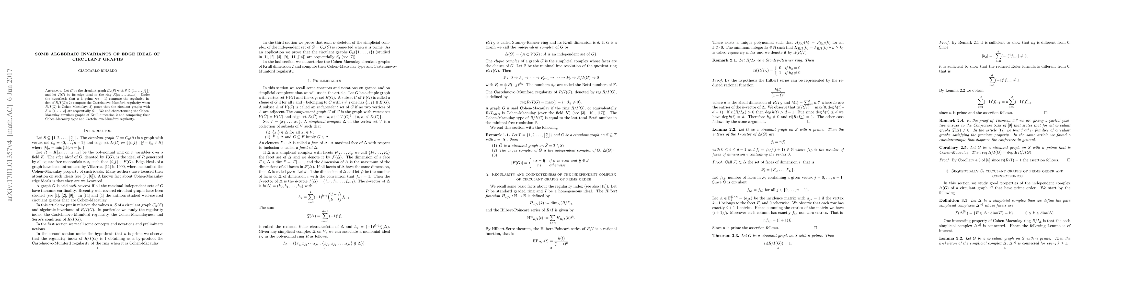 This paper computes algebraic invariants for the edge ideal of circulant graphs when the graph size is prime, including the regularity index, Castelnuovo-Mumford regularity for Cohen-Macaulay cases, and proves sequential $S_2$ property for specific circulant graph structures. It concludes by characterizing Cohen-Macaulay circulant graphs of dimension 2 and determining their Cohen-Macaulay type and regularity.