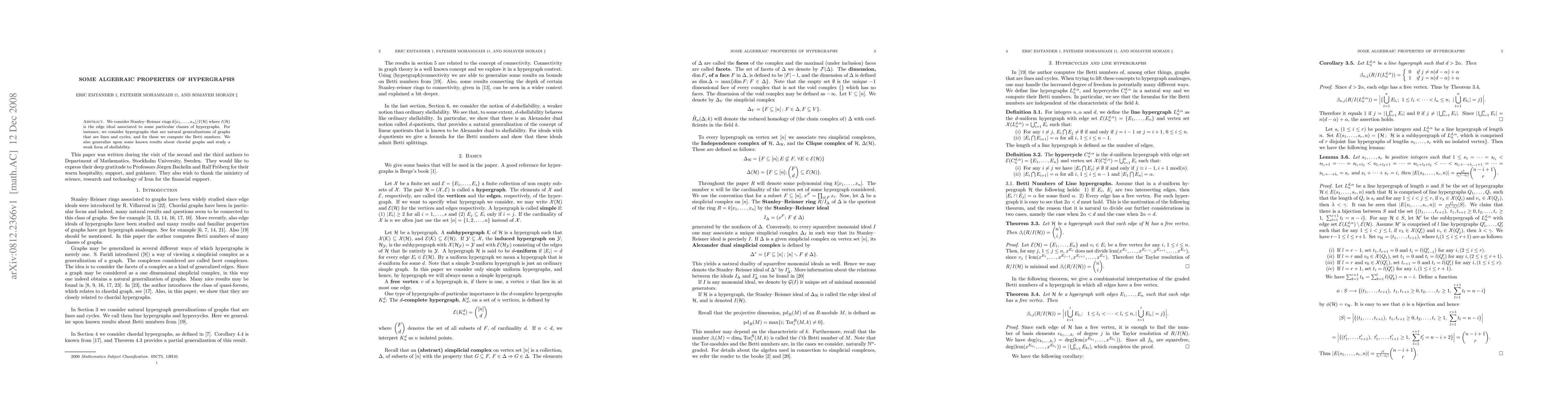 Researchers studied algebraic properties of hypergraphs using Stanley-Reisner rings and edge ideals, computing Betti numbers and generalizing on chordal graph results, with implications for understanding shellability in these structures.