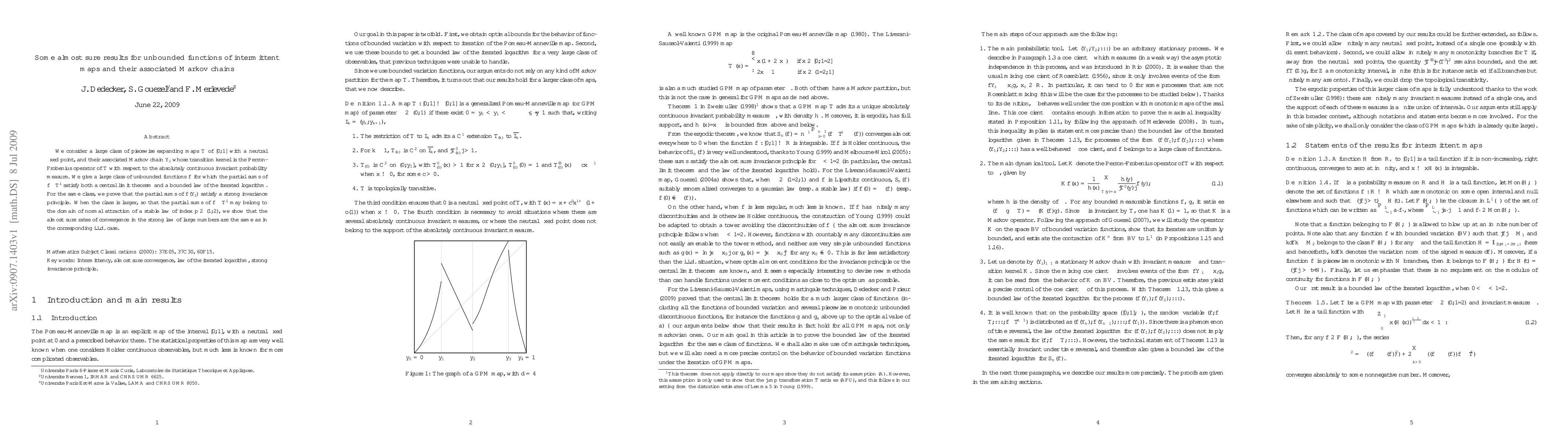 This paper explores piecewise expanding maps with a neutral fixed point and their associated Markov chains, proving almost sure results for unbounded functions. It demonstrates central limit theorems, laws of the iterated logarithm, and strong invariance principles for the partial sums of these functions.