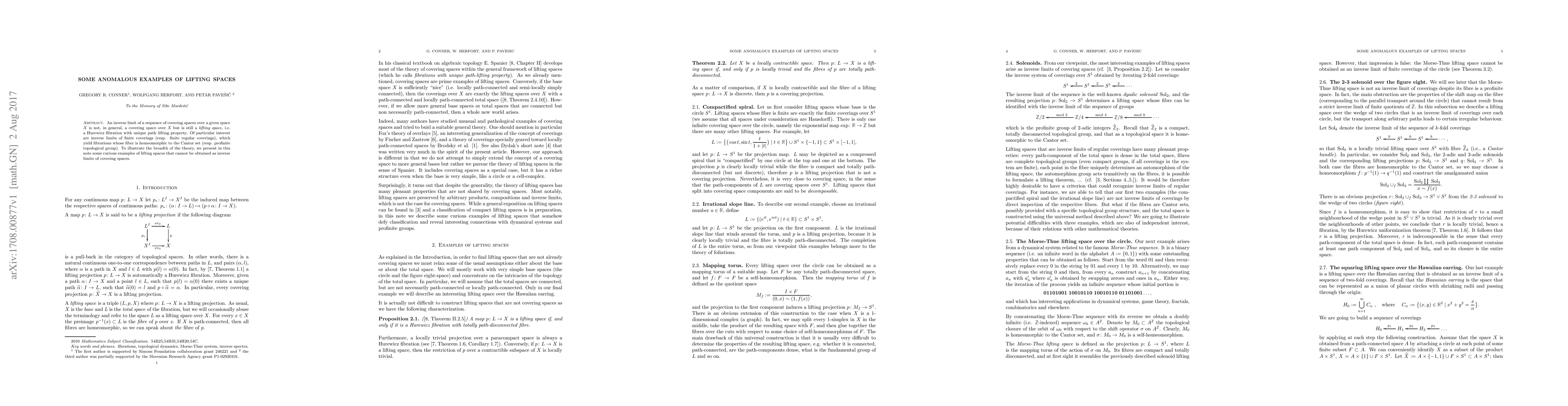 An inverse limit of a sequence of covering spaces over a given space $X$ is not, in general, a covering space over $X$ but is still a lifting space, i.e. a Hurewicz fibration with unique path lifting property. Of particular interest are inverse limits of finite coverings (resp. finite regular coverings), which yield fibrations whose fiber is homeomorphic to the Cantor set (resp. profinite topological group). To illustrate the breadth of the theory, we present in this note some curious examples of lifting spaces that cannot be obtained as inverse limits of covering spaces.