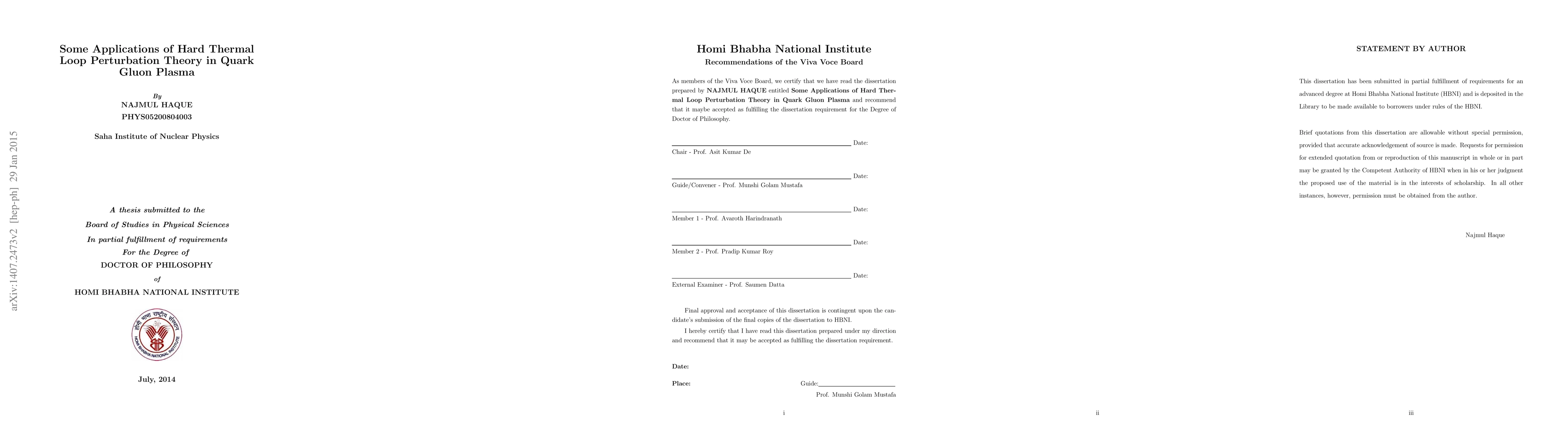 This thesis is mainly devoted to the study of thermodynamics for quantum Chromodynamics. In this thesis I apply hard-thermal-loop perturbation theory, which is a gauge-invariant reorganization of the conventional perturbative expansion for quantum gauge theories to study the thermodynamics of QCD in leading-order, next-to-leading-order and next-to-next-to-leading order at finite temperature and finite chemical potential. I also discuss about various order diagonal and off-diagonal quark number susceptibilities in leading order as well as beyond leading order. For all the observables, I compare our results with available lattice QCD data and we find good agreement. Along with the computation of thermodynamic quantities of hot and dense matter, I also discuss about low mass dilepton rate from hot and dense medium using both perturbative and non-perturbative models and compare them with those from lattice gauge theory and in-medium hadron gas.